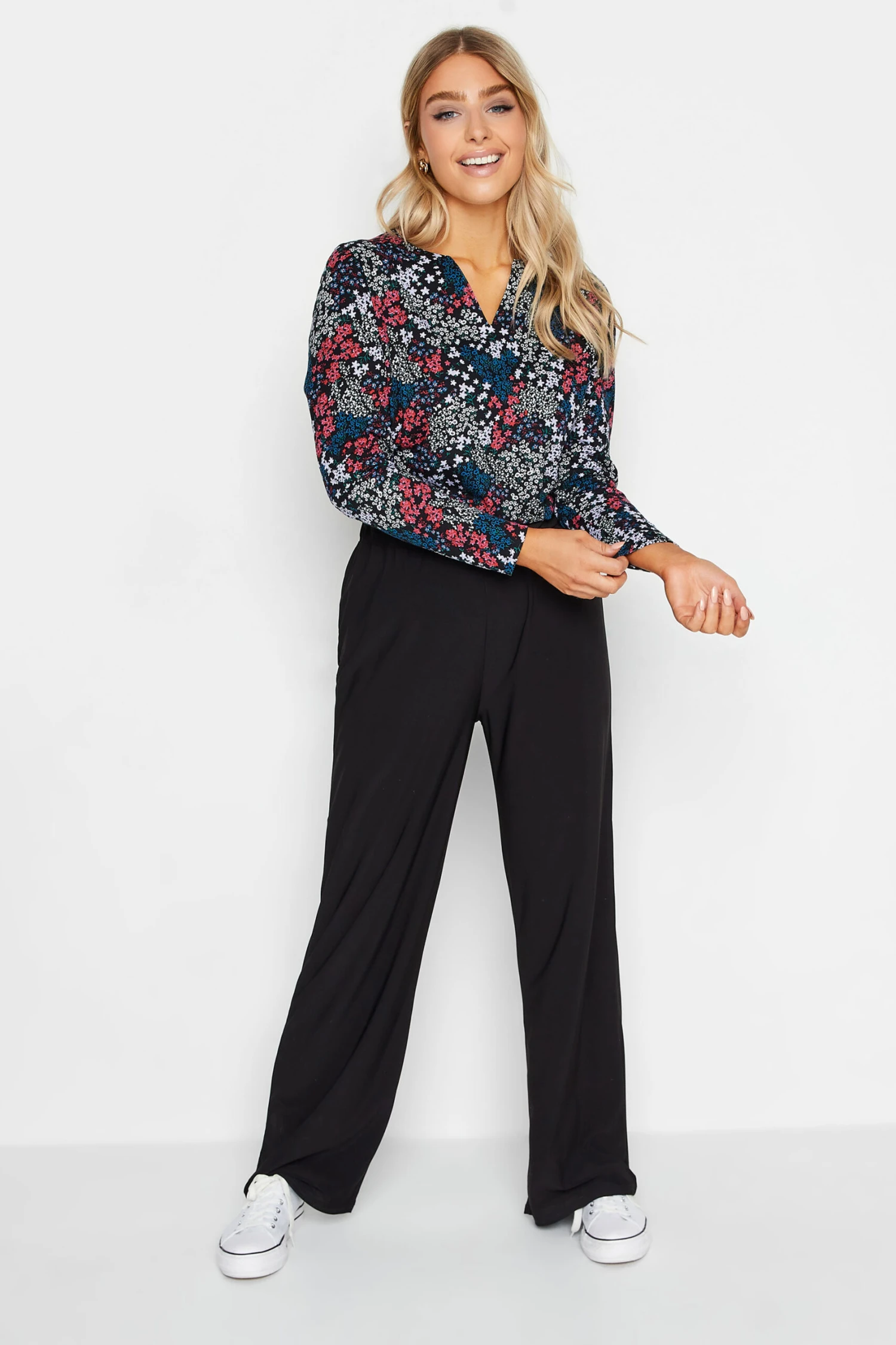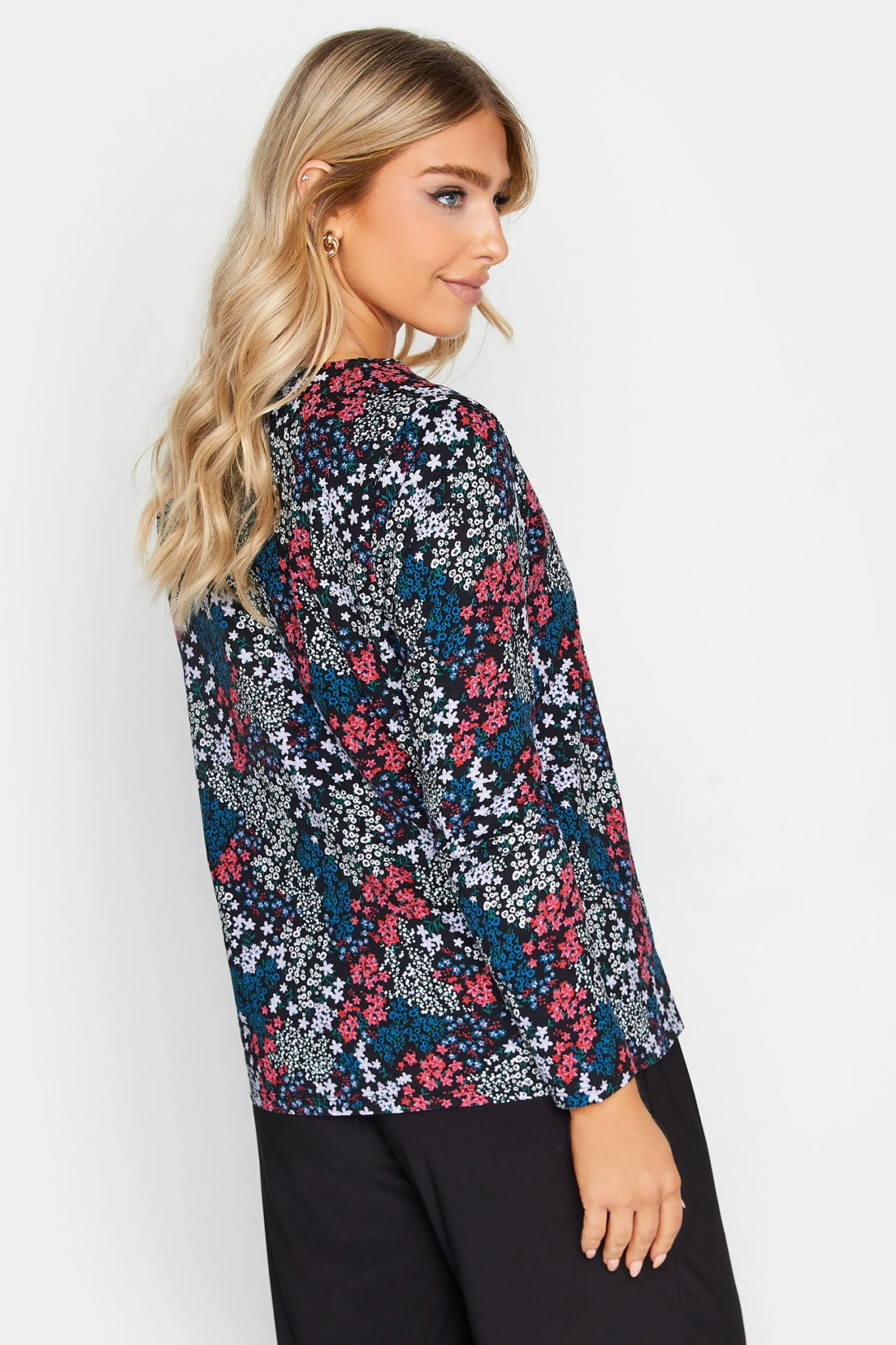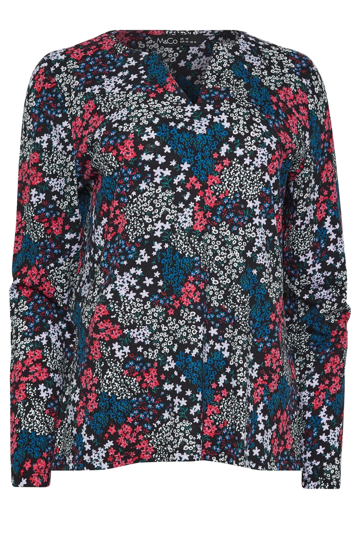 Comfortable and casual – this new-in t-shirt will be one you wear on repeat. Made from 100% cotton, it features a notch neckline and long sleeves in a ditsy print. Pair with jeans and loafers for a smart casual look.