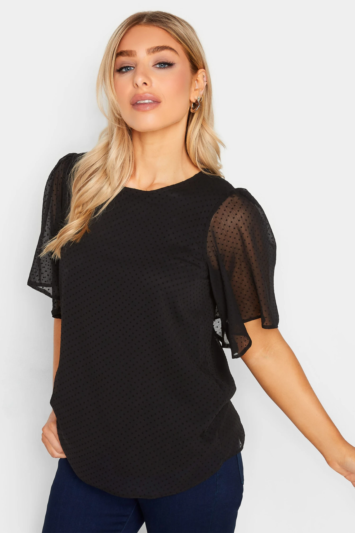 Thinking about adding a new blouse to your collection? This one could become your newfound favourite. With a simple scoop neck and a keyhole button fastening, this blouse features short angel sleeves and is finished in a dobby fabric. Style with jeans for a smart casual look.