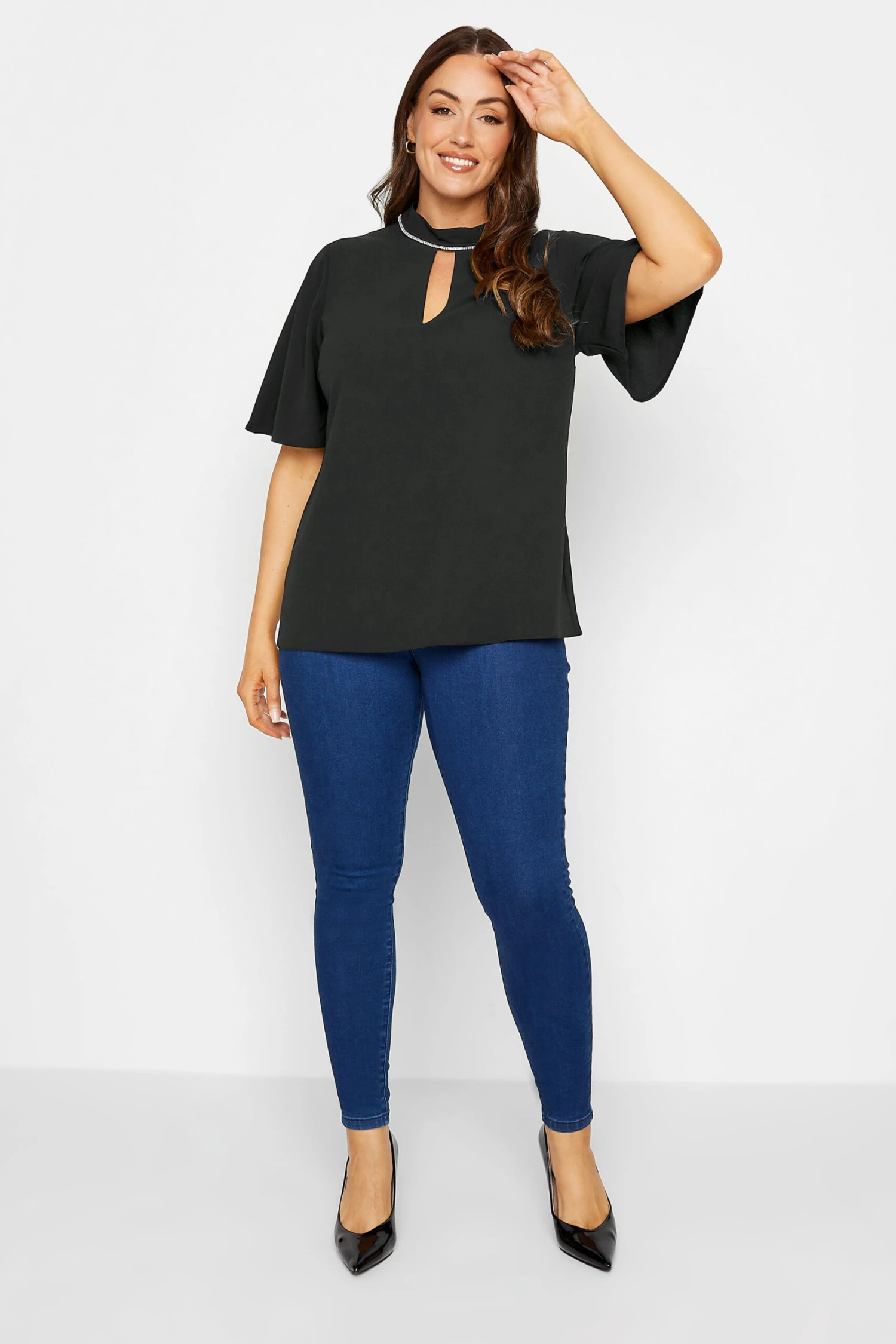 This blouse can take you from desk-to-dinner. Made from a comfortable woven fabric, it features a high embellished neckline with a keyhole front and back button neck fastening with short frill sleeves. Pair with denim and heels for a stylish outfit you can rely on.