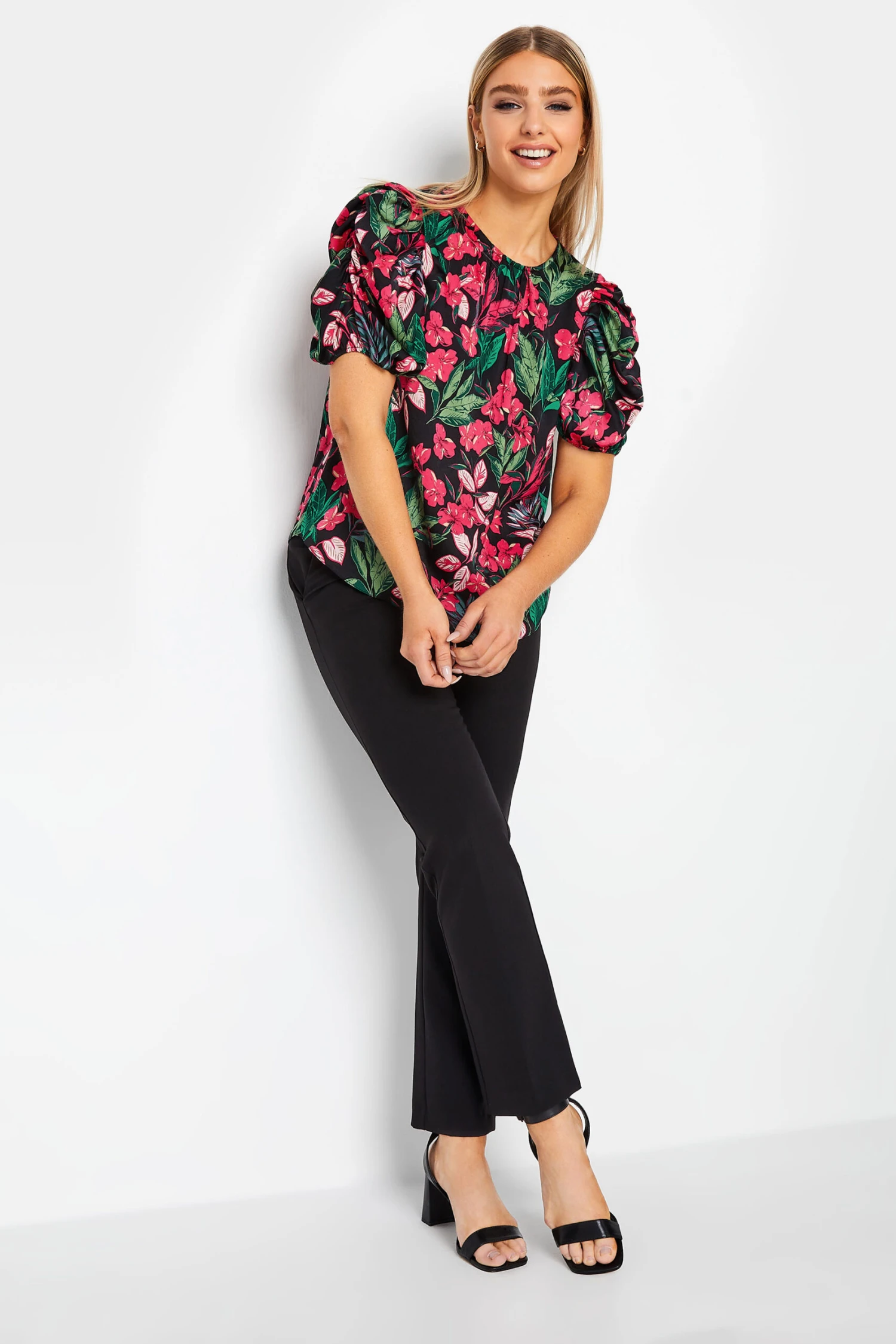 Refresh your top collection with this new blouse! Made from a comfortable woven fabric, it features a floral design, a scoop neckline and short puff sleeves with a back keyhole fastening. Style with jeans and heels for a smart casual look.