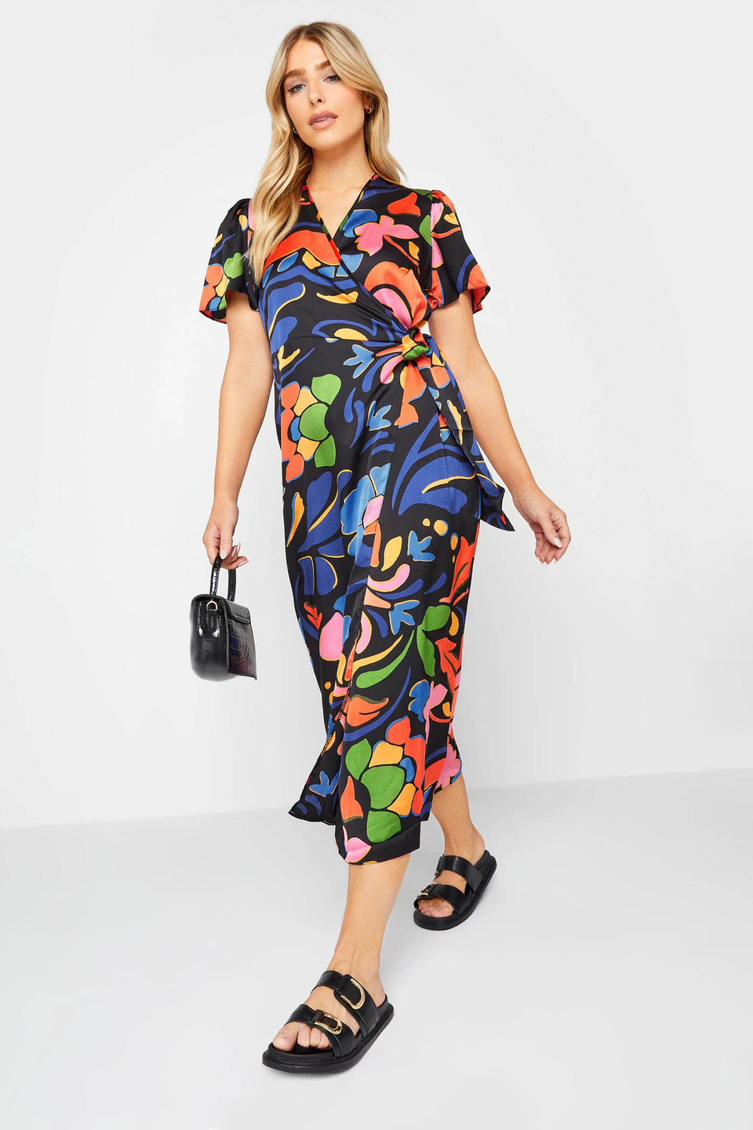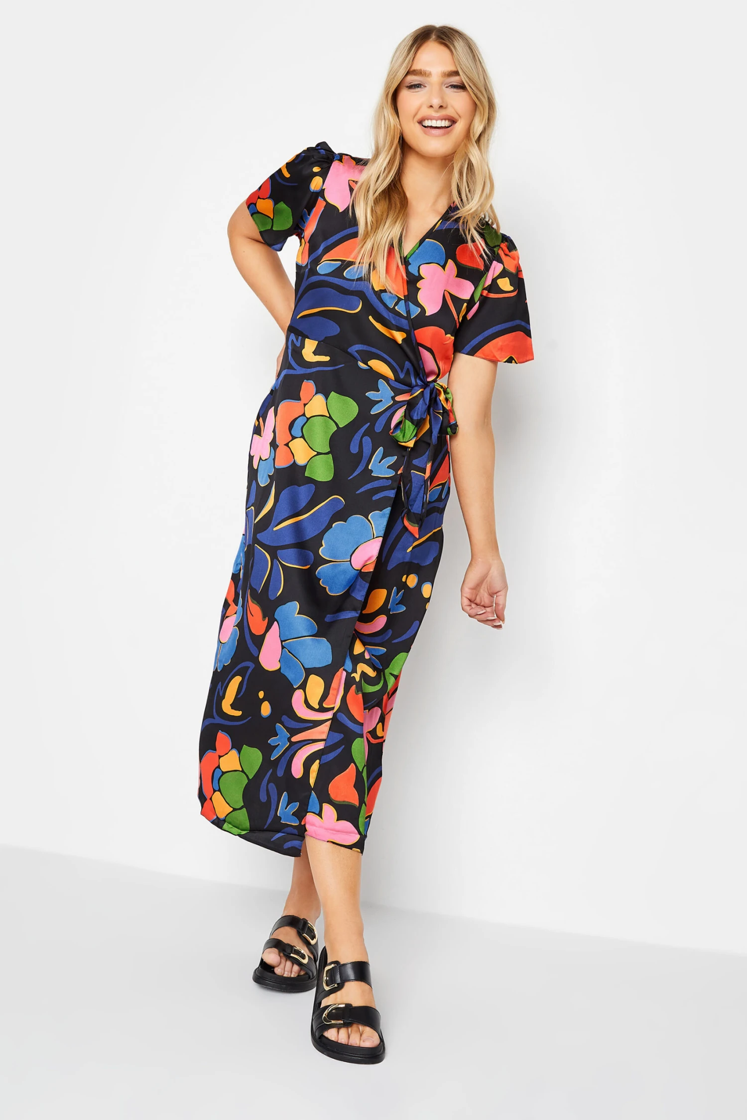 Upgrade your new season collection with this new-in wrap dress. Made from a comfortable jersey fabric, it features a floral print with a tie waist fastening and front split hemline. Simply pair with heels for an effortless look that can take you from desk-to-dinner in style.