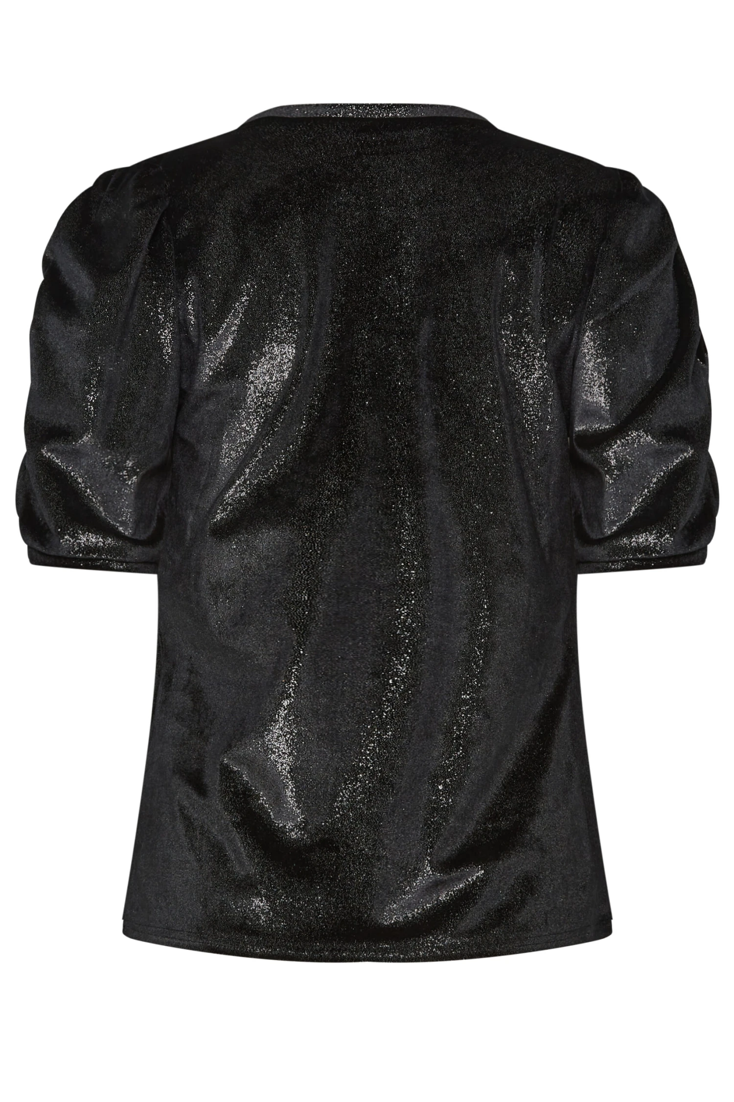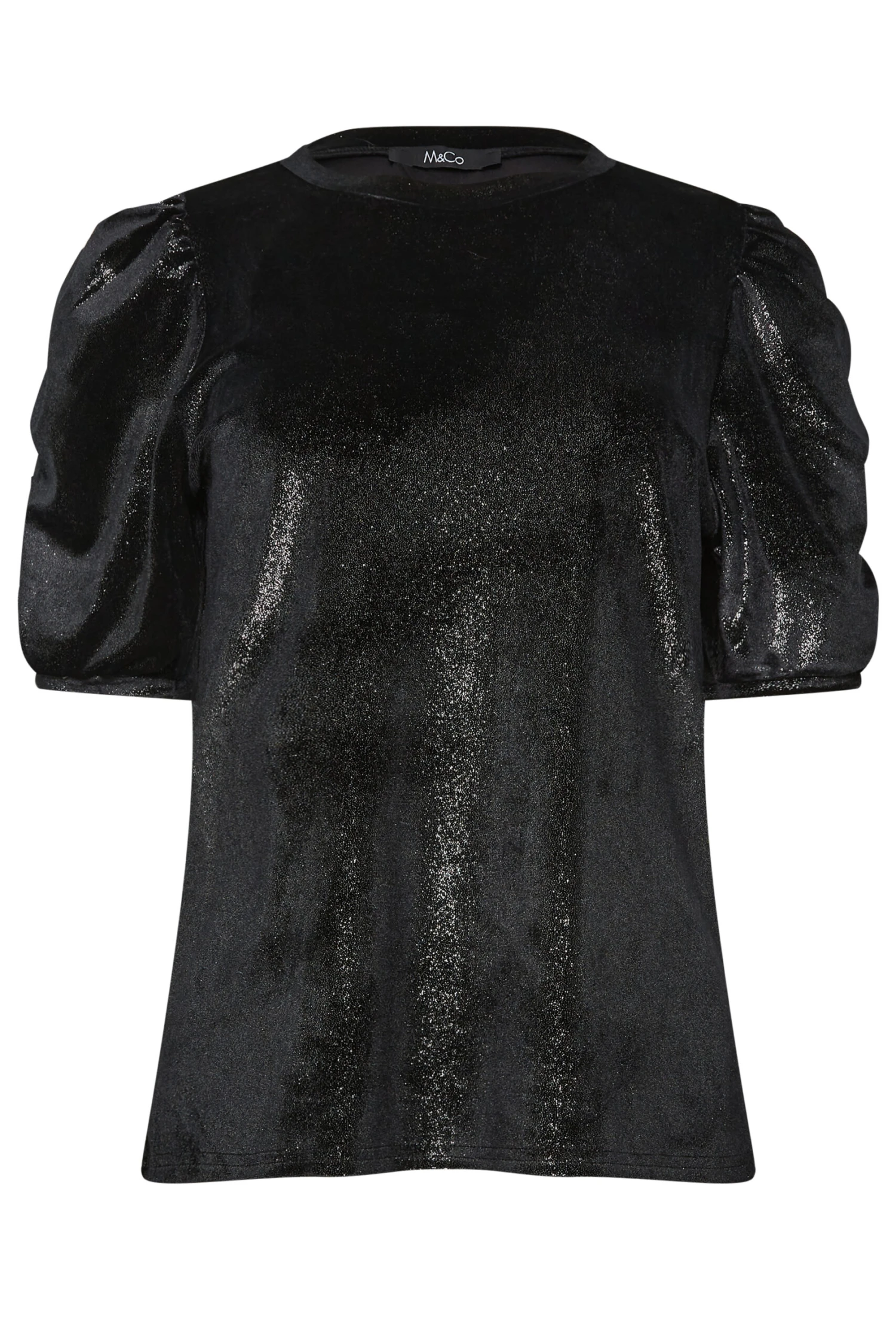 Add a touch of sparkle to your wardrobe with this new-in blouse. Made from a velvet touch fabric, it features a scoop neckline with short ruched sleeves in a glitter design. Pair with trousers and heels for a day-to-night look.