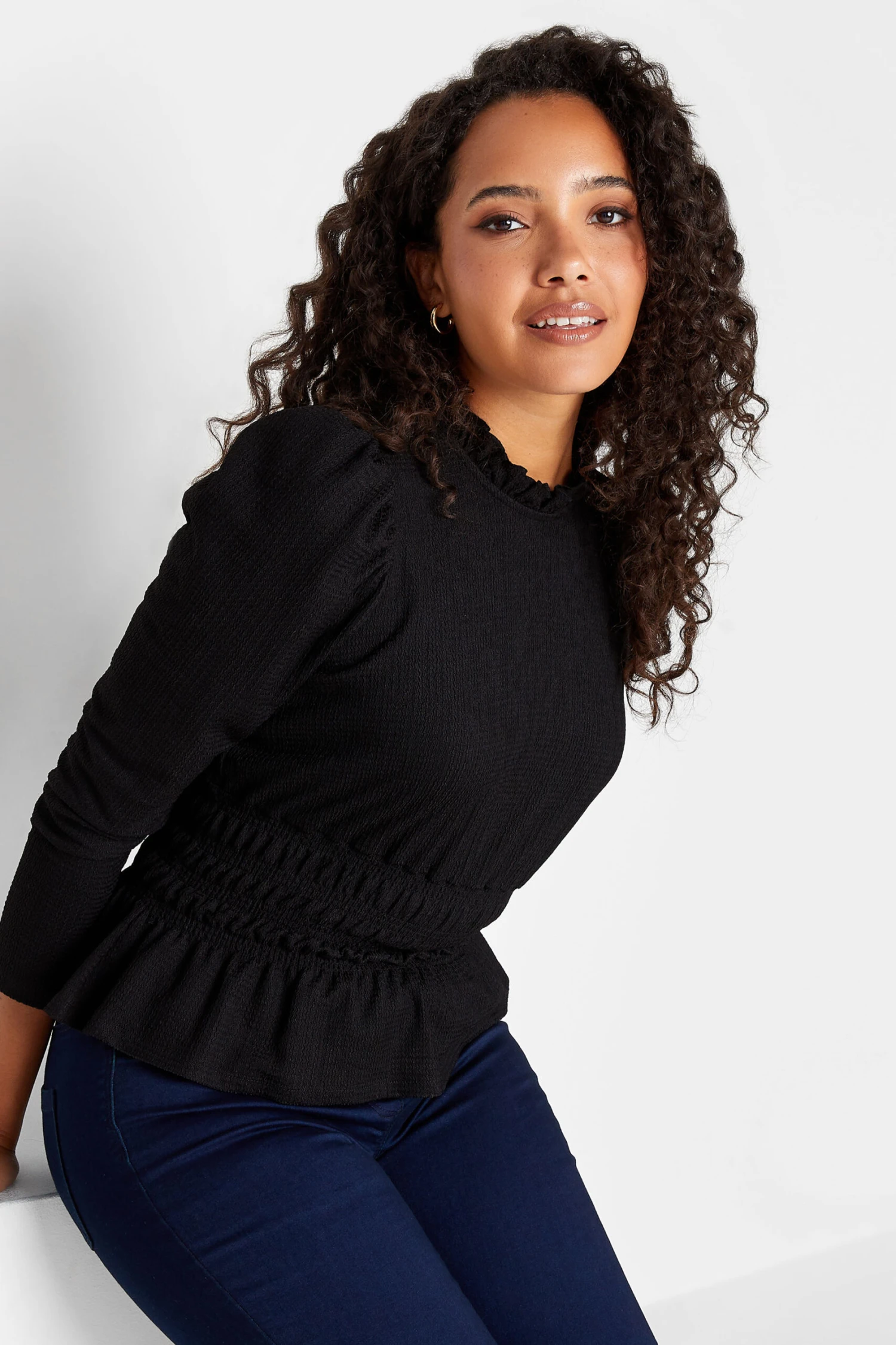 Step into the office in this new-in textured blouse. Made from a comfortable woven fabric, this blouse features a high frill neck, long sleeves, and a textured finish. Wear with trousers and heels for a look you can wear on repeat!