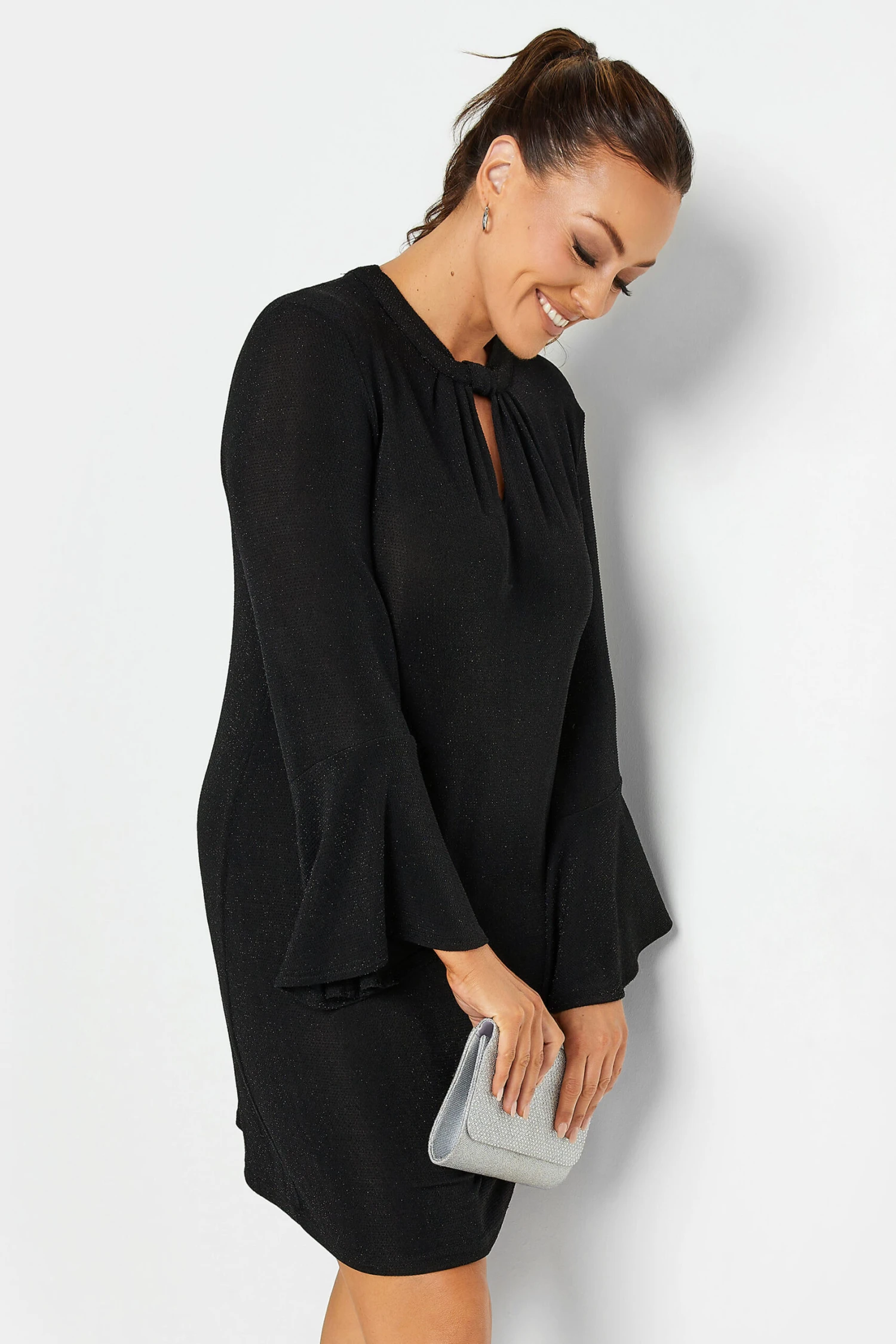 Dance the night away in this new M&Co party dress! Made from a comfortable woven fabric, this dress features a keyhole design, a mini length, and long sleeves. Style with heels for a look you can wear with confidence.