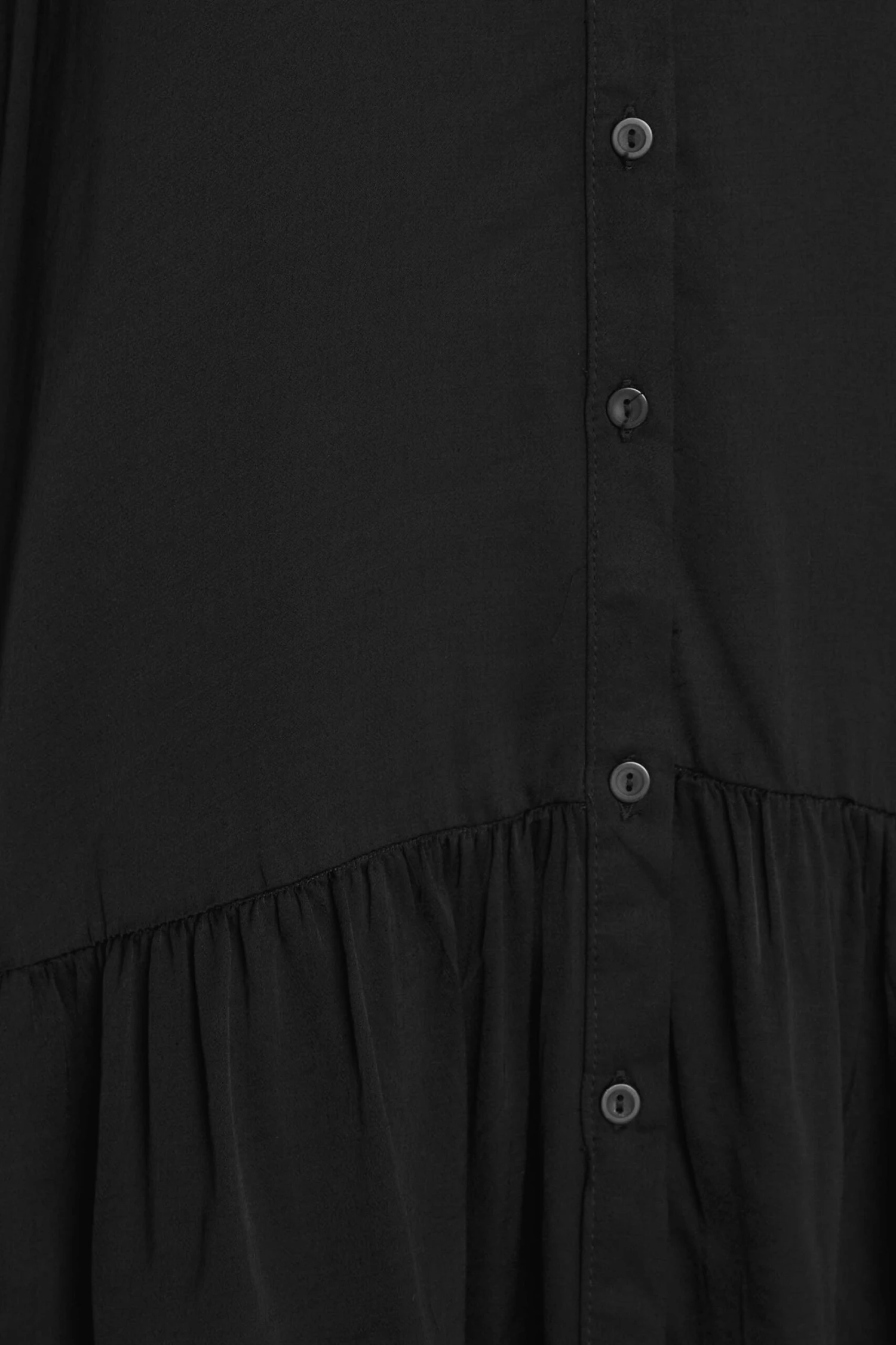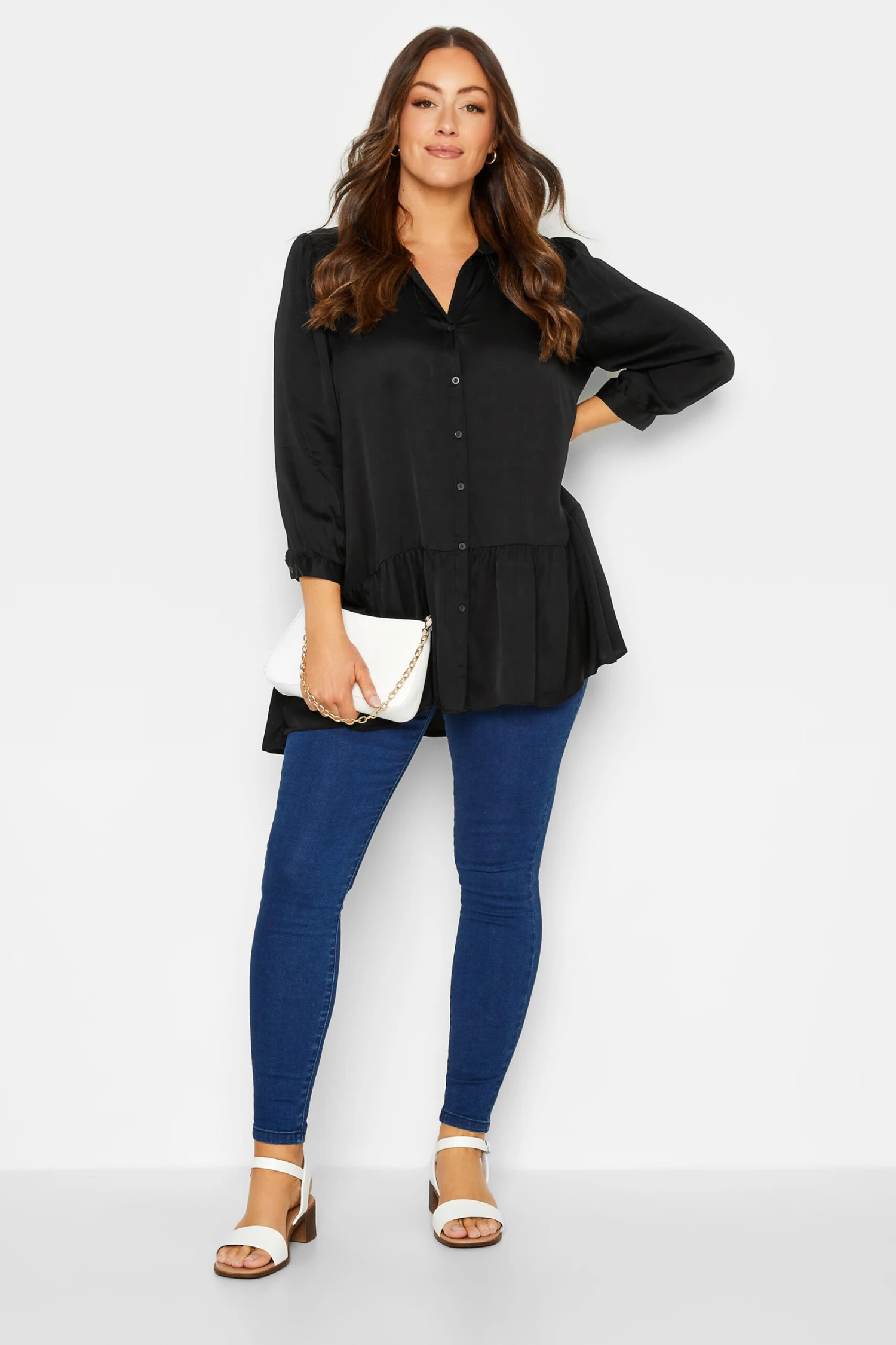 New season, new shirt! Made from a soft satin fabric this shirt features a button-through look, a classic collar, long sleeves, and frill hem. Style with heels and trousers for a look you can wear confidently.