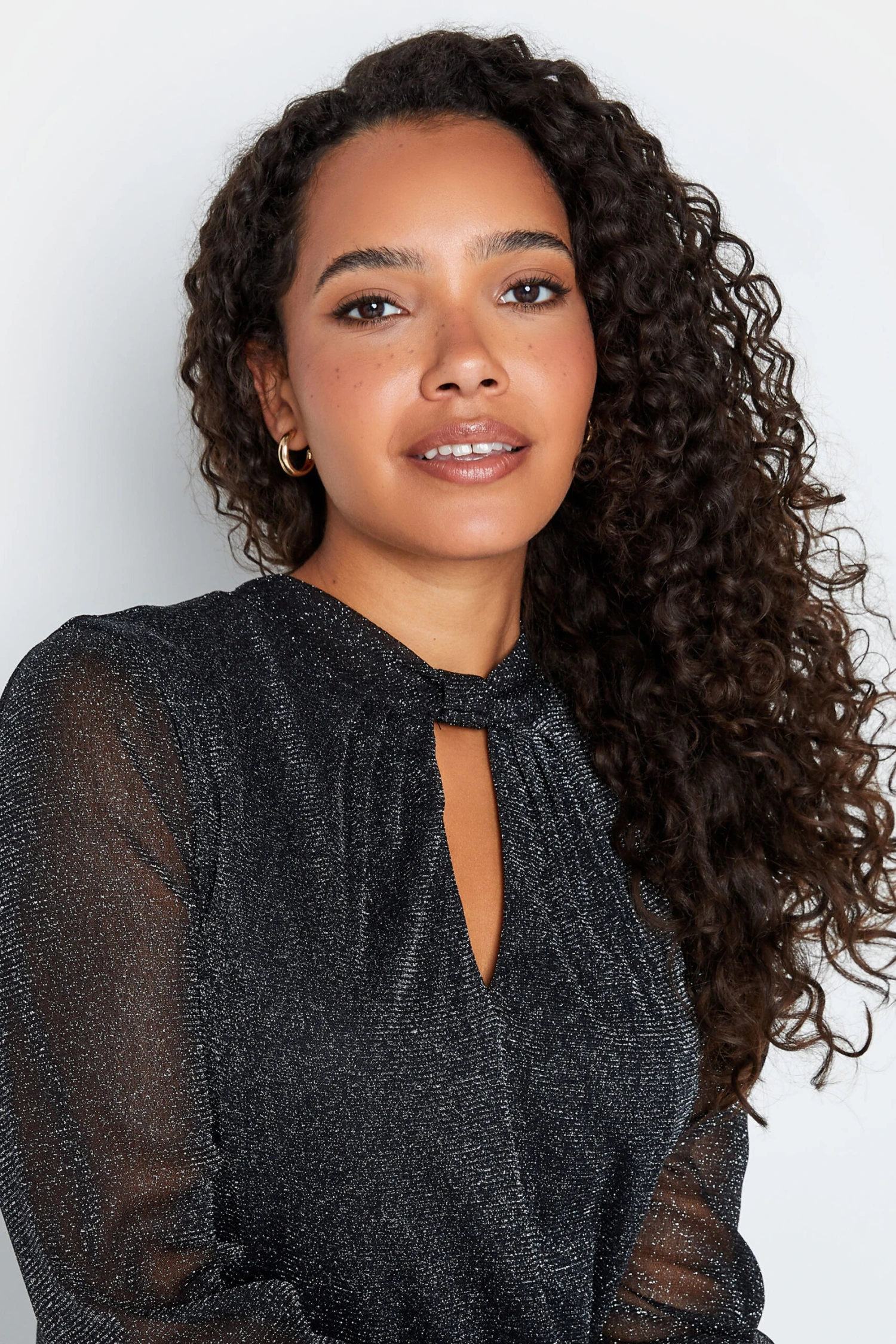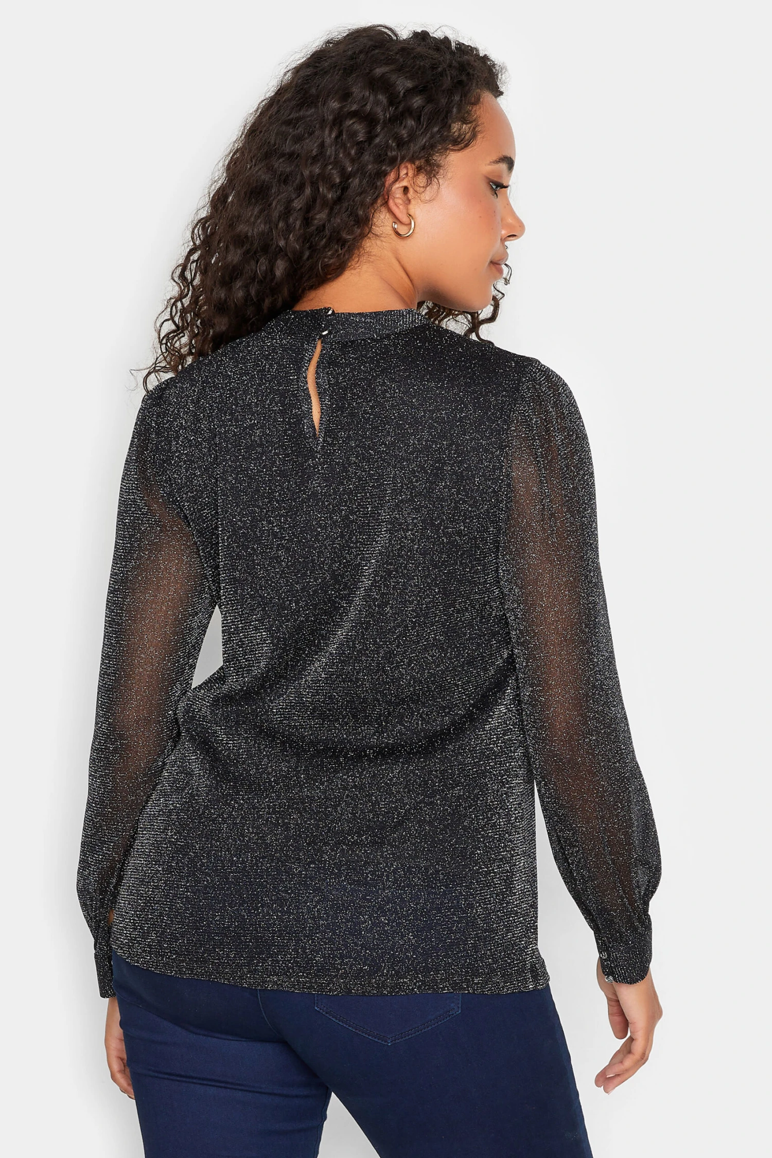 Wondering what to wear this weekend? Why not try this must-have blouse. Made from a comfortable woven fabric, it features a shimmer glitter effect with long cuffed sleeves and a keyhole design at the neck. Team with jeans and heels for an effortless look that is perfect for dinner and drinks.
