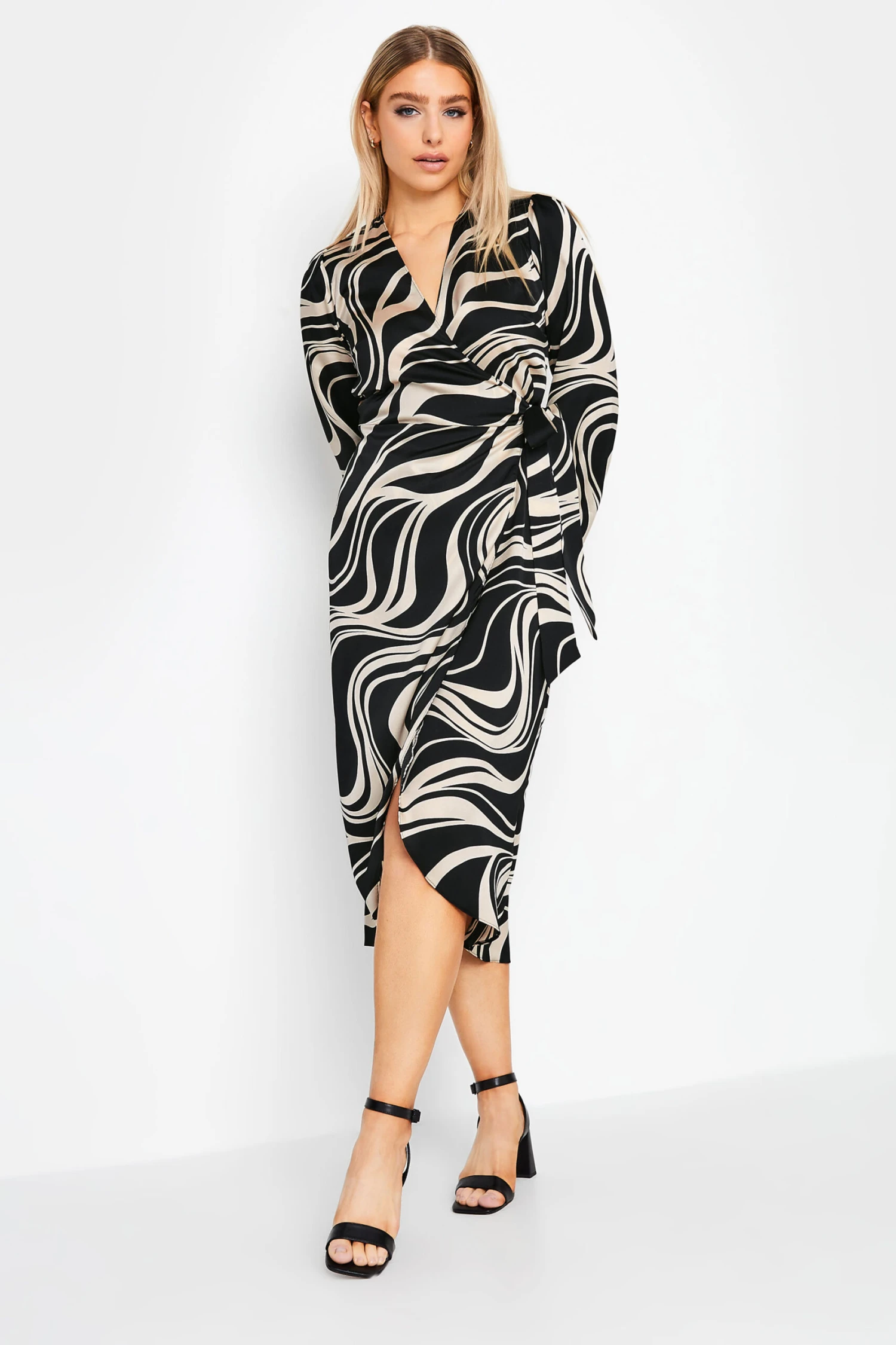 This wrap dress is perfect for your next special occasion. Designed in a swirl print, it features a v-neckline with long sleeves and an adjustable tie waist, complete in a wrap midi style. Pair with heels and a clutch bag to finish the look.