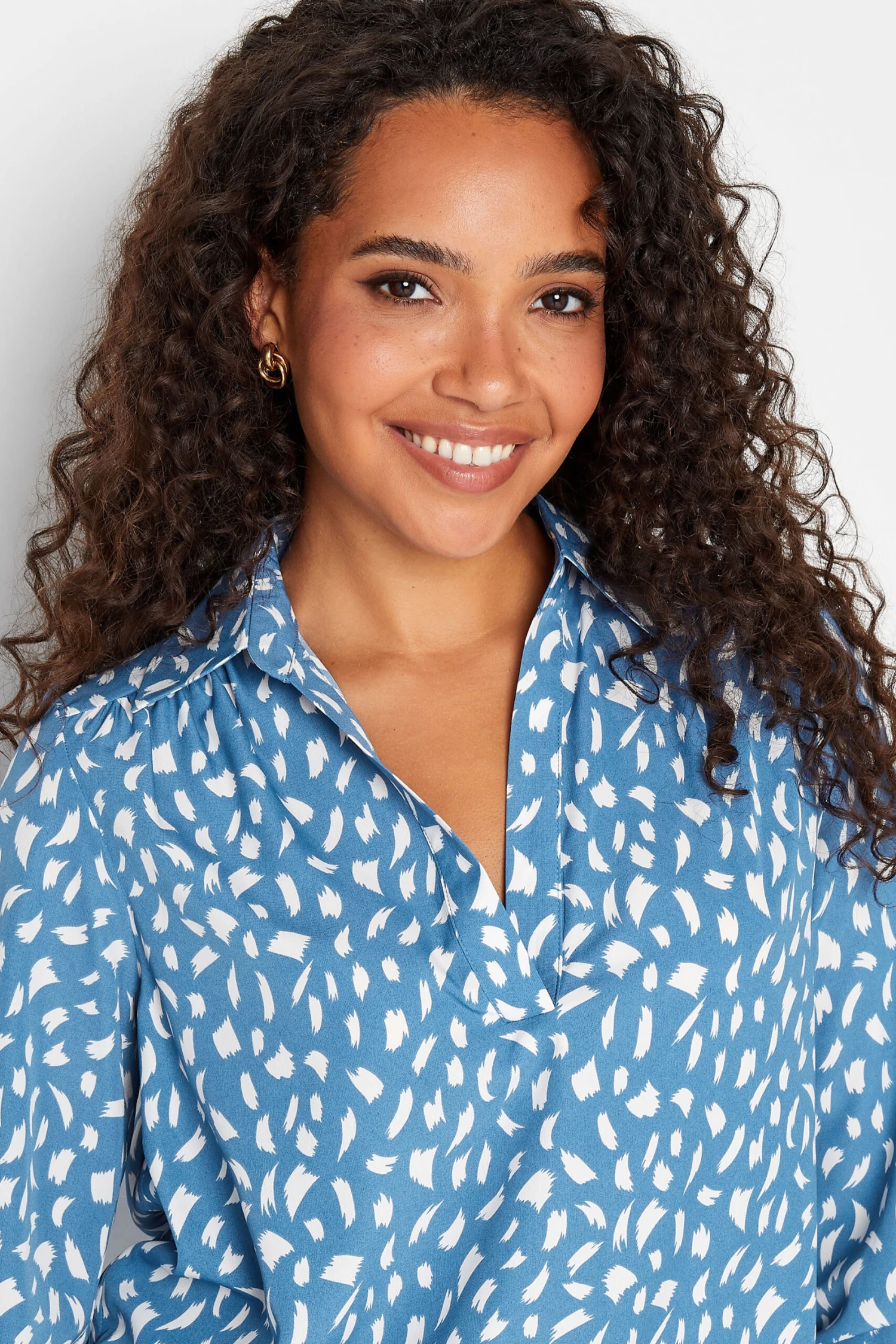 Add a pop of colour into your wardrobe with this new-in shirt. Designed in a comfortable woven fabric, it features an open collar, and v-neckline in a half-placket design with long sleeves and is complete in a brush stroke print. Finish the look with trousers and heels for the office and beyond.