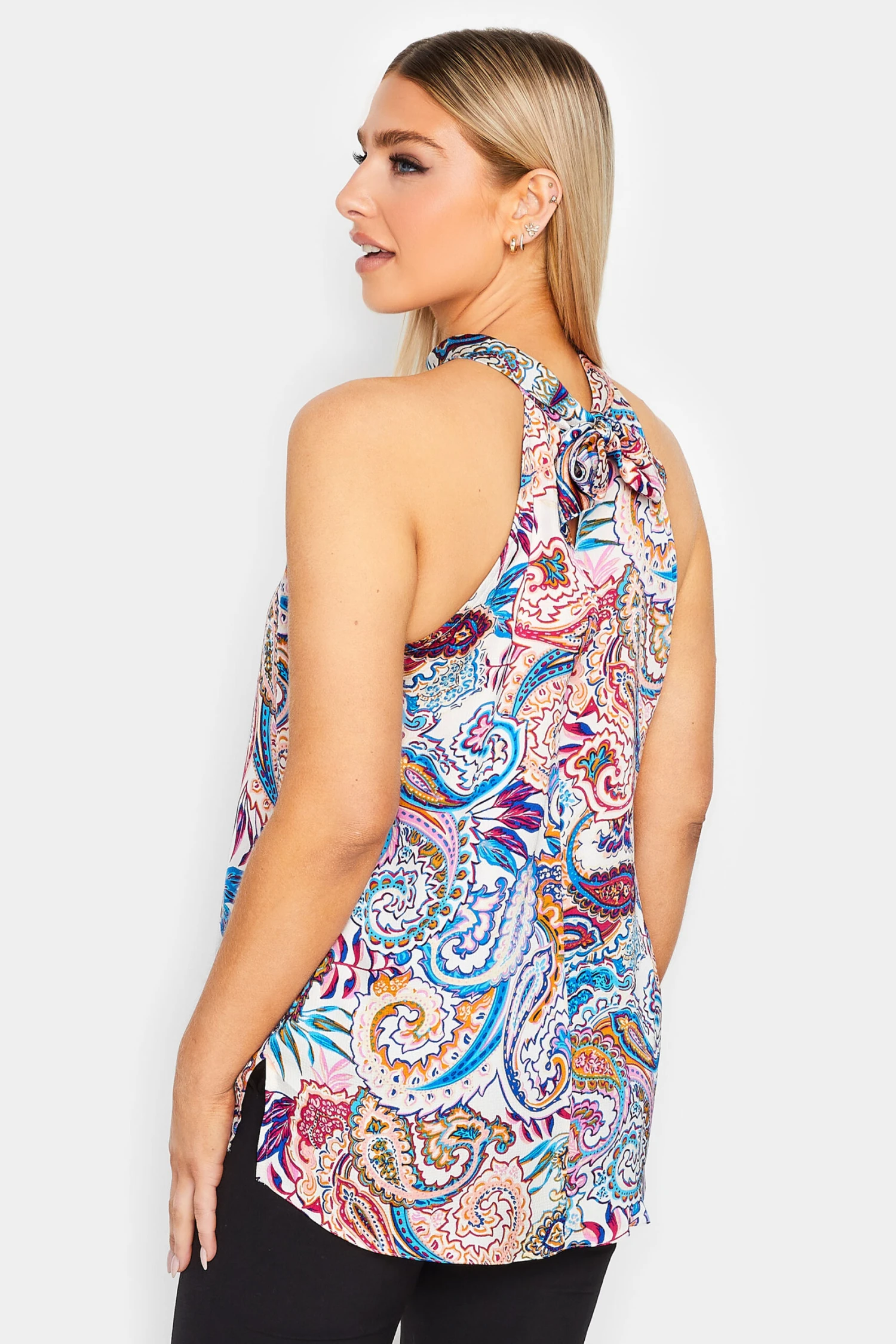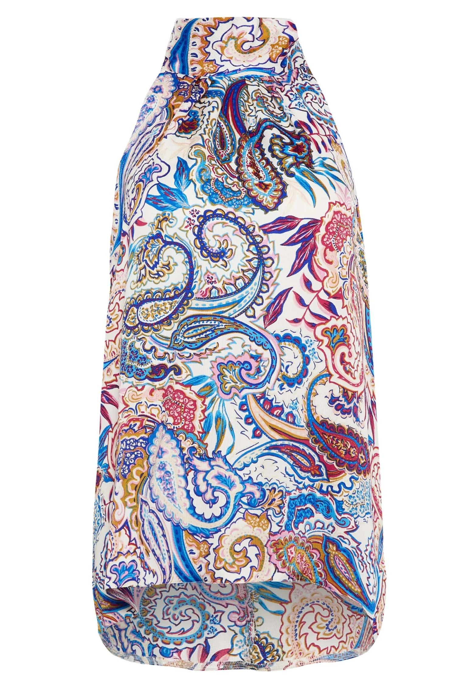Looking for a new weekend outfit? This paisley print halterneck blouse is a must-have! Made from a beautiful satin fabric, this blouse features a high neck sleeveless design with a keyhole tie fastening at the back. Pair with jeans and heels for a stylish look to wear while out with friends.