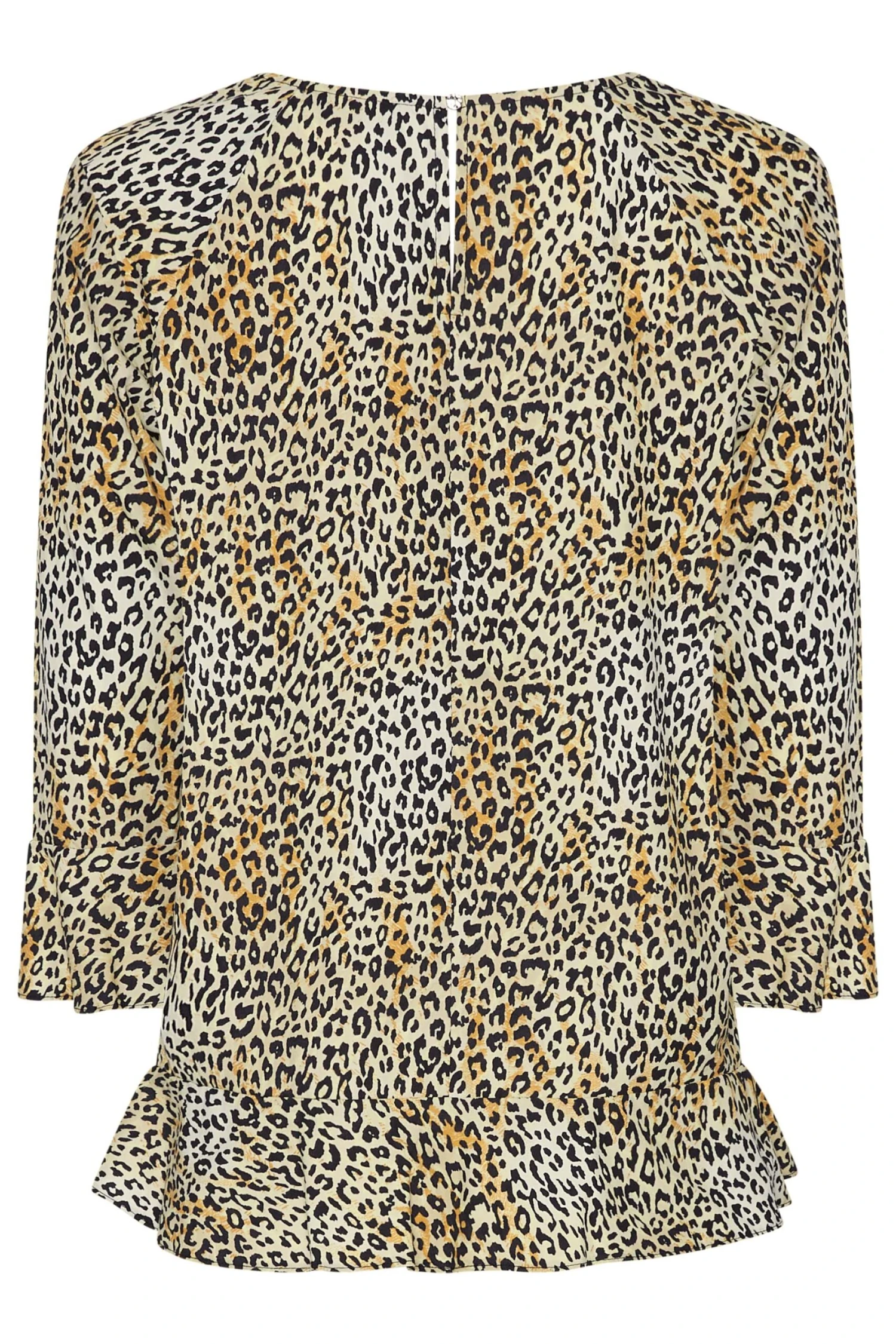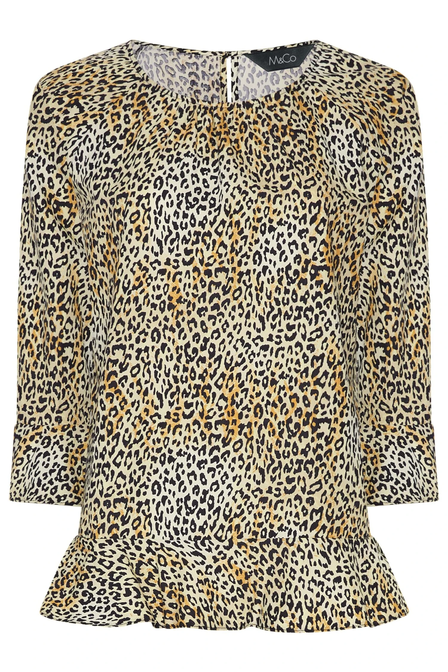 Renew your workwear wardrboe with this blouse. Made from a comfortable woven fabric, it features a scoop neckline with 3/4 length sleeves, a frill hem and cuffs, complete in a leopard print design. Style with jeans and heels to complete the look.