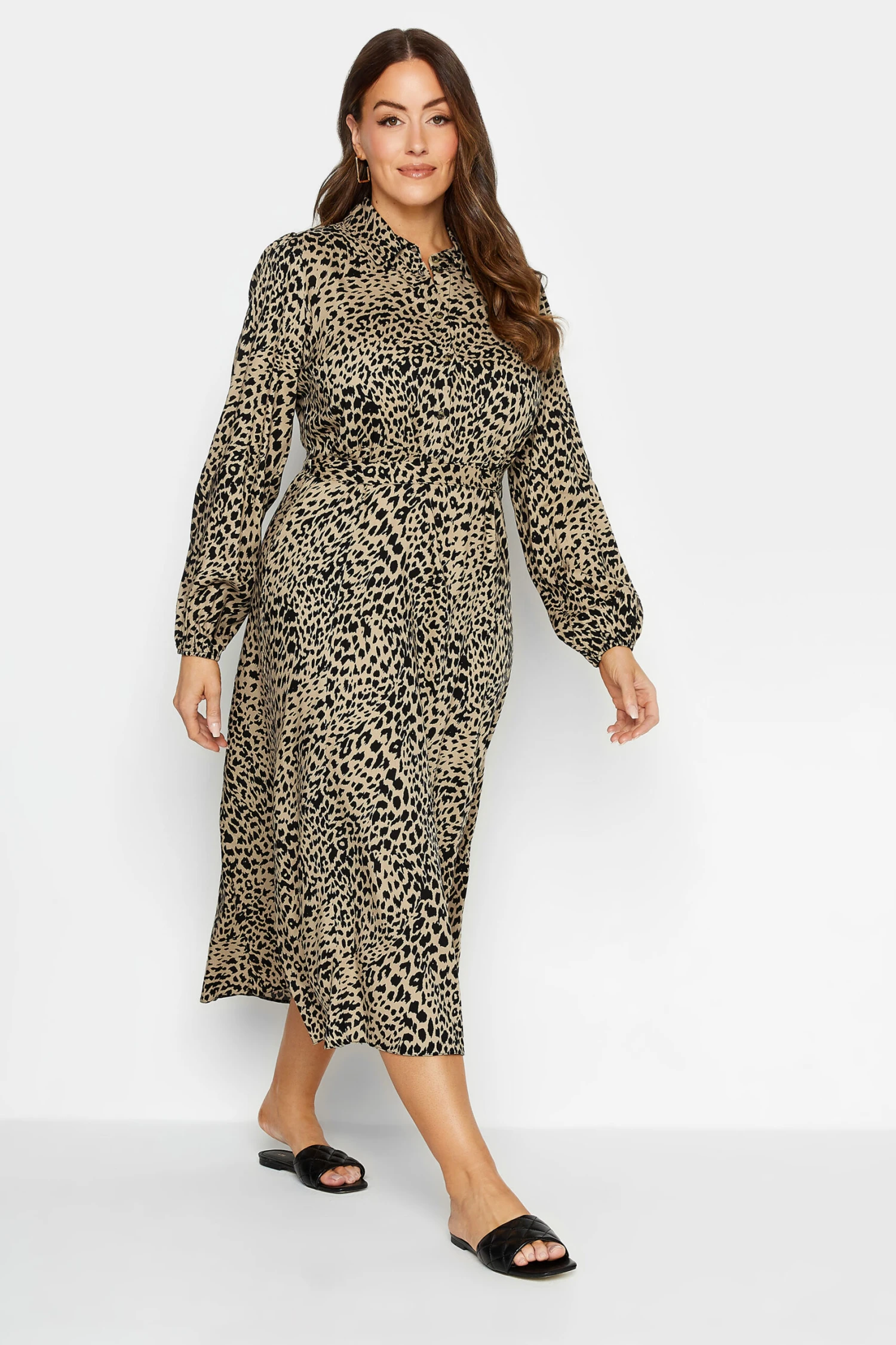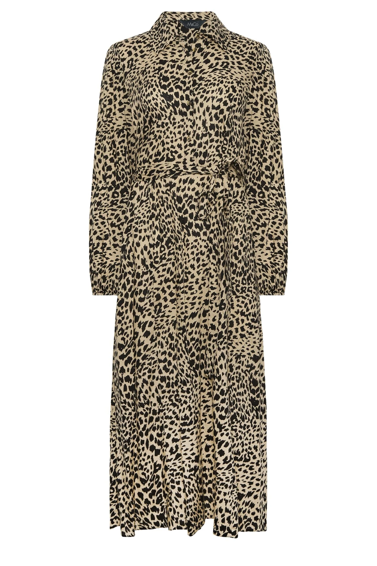 Add this must-have shirt dress to your new season styles. Featuring an animal print in a midaxi length, this dress finishes with long balloon sleeves, button fastenings, and a tie waist belt. Pair with sandals or trainers for an effortless look.