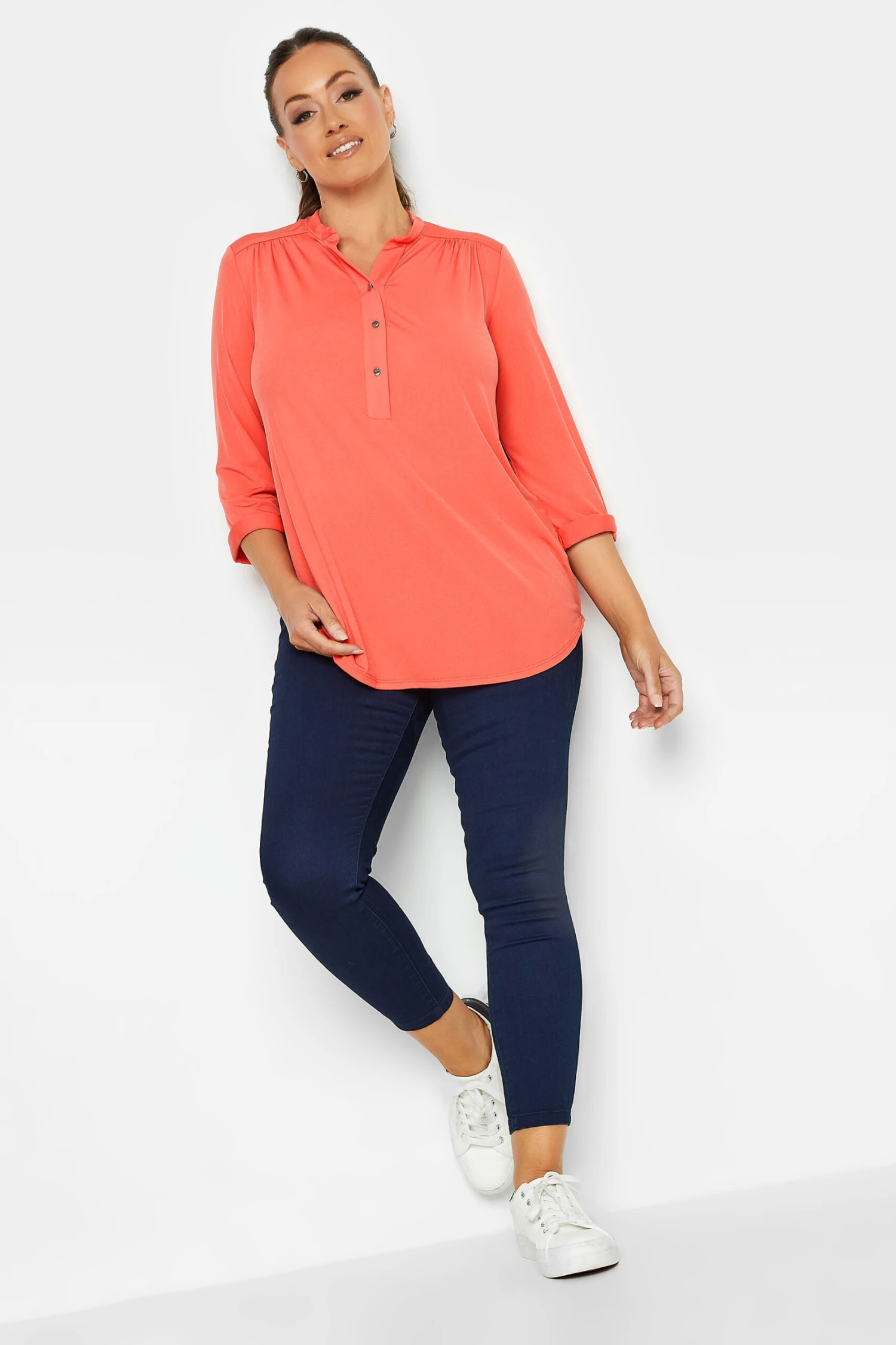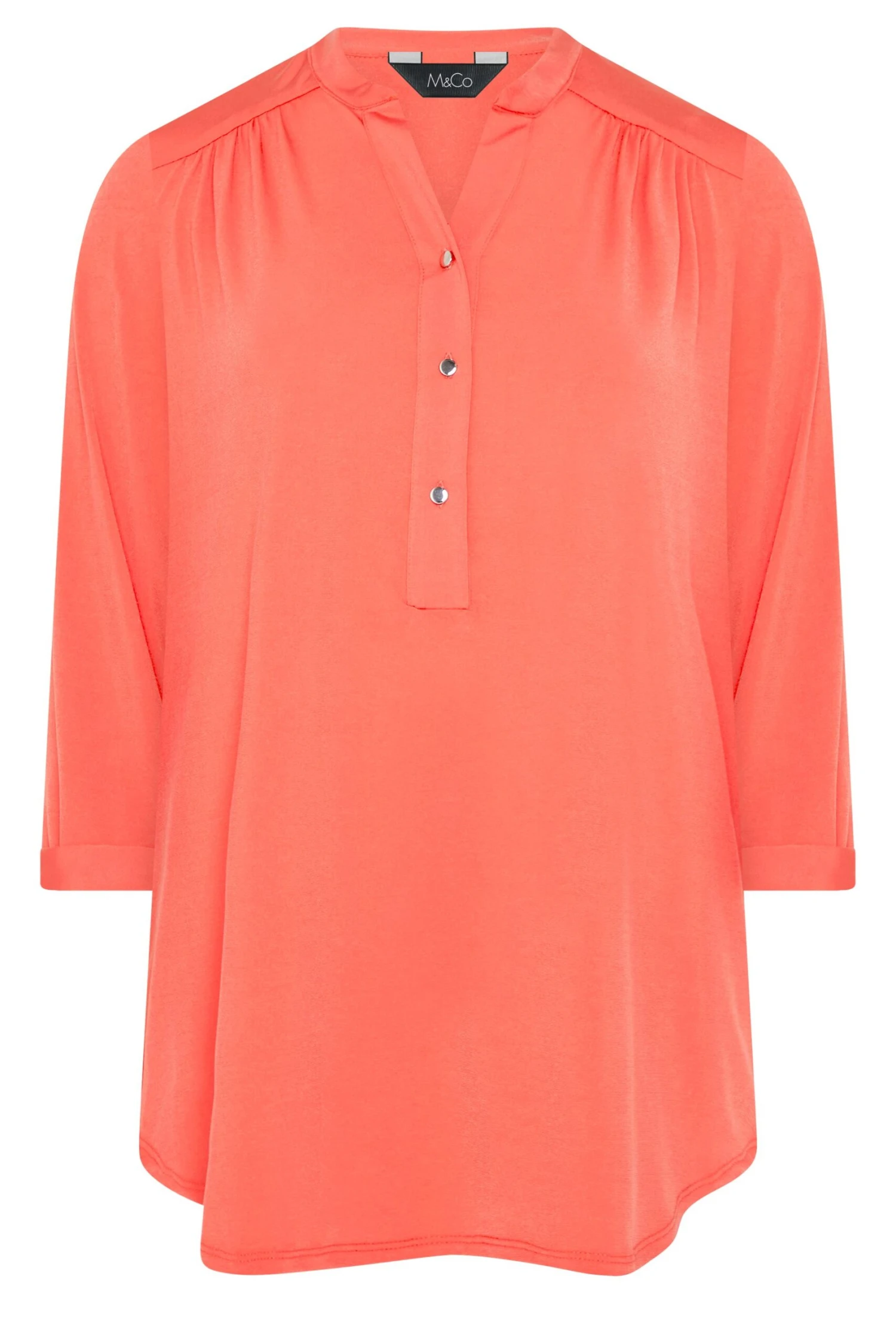 Introduce this must-have shirt into your new season collection. Made from a comfortable jersey fabric, it features a half placket with 3/4 length sleeves and a v-neckline. Simply pair with trousers and court shoes for an effortless look that can take you from desk-to-dinner in style.