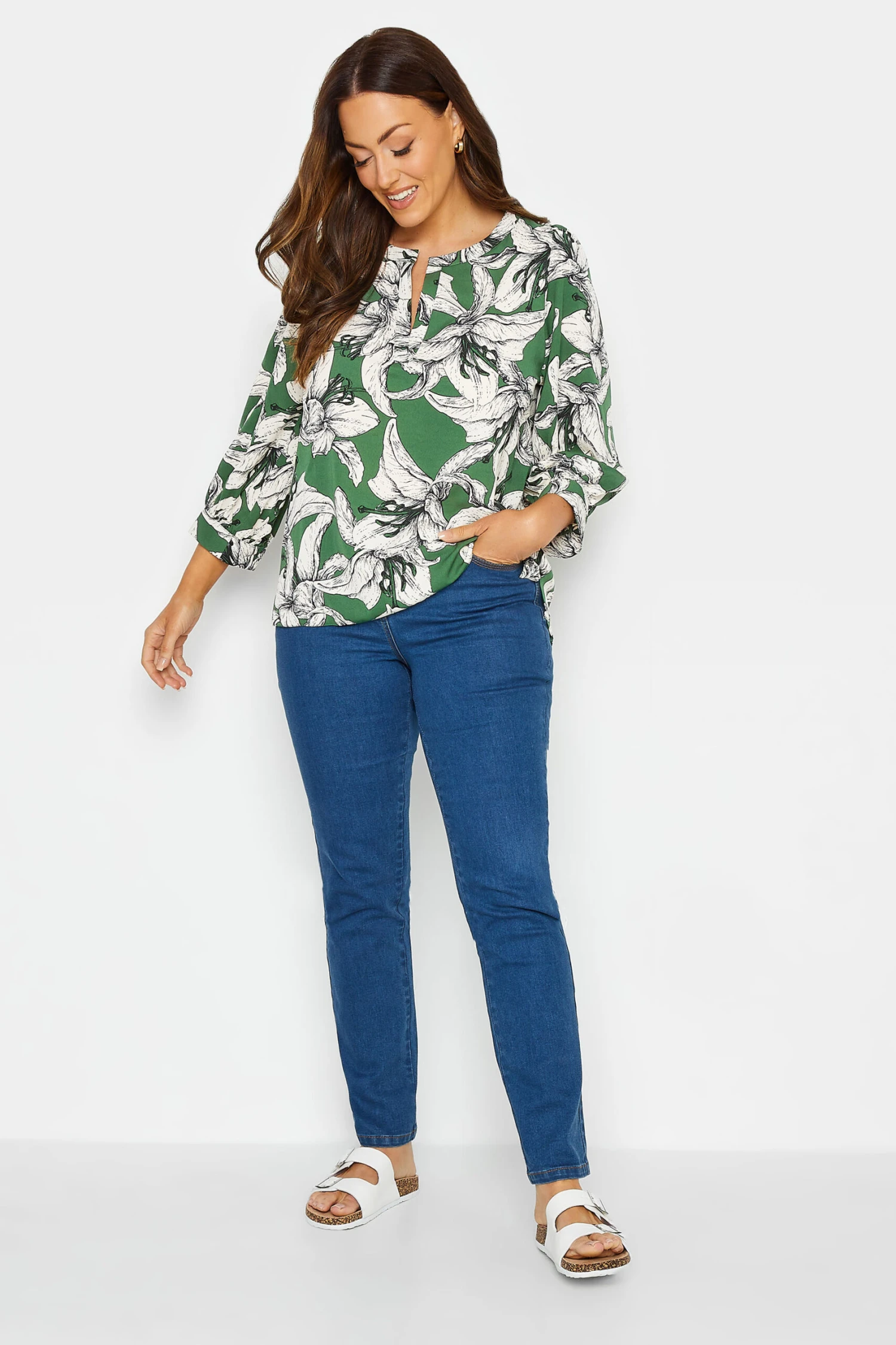 Update your blouse collection with the new floral print shirt. Made from a comfortable woven fabric this shirt features 3/4 length sleeves, and a v-neckline. Style with jeans and sandals for a casual and stylish look.