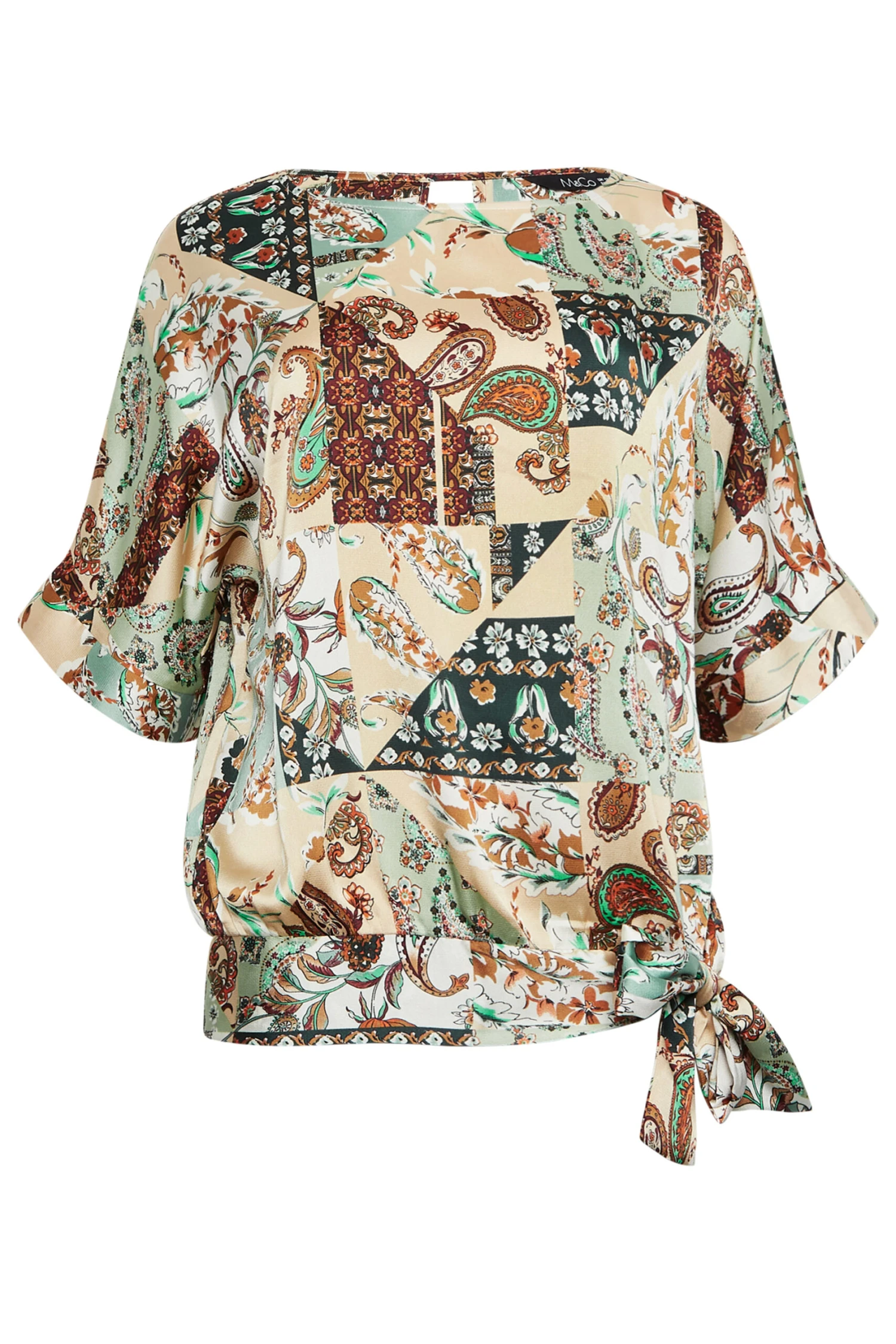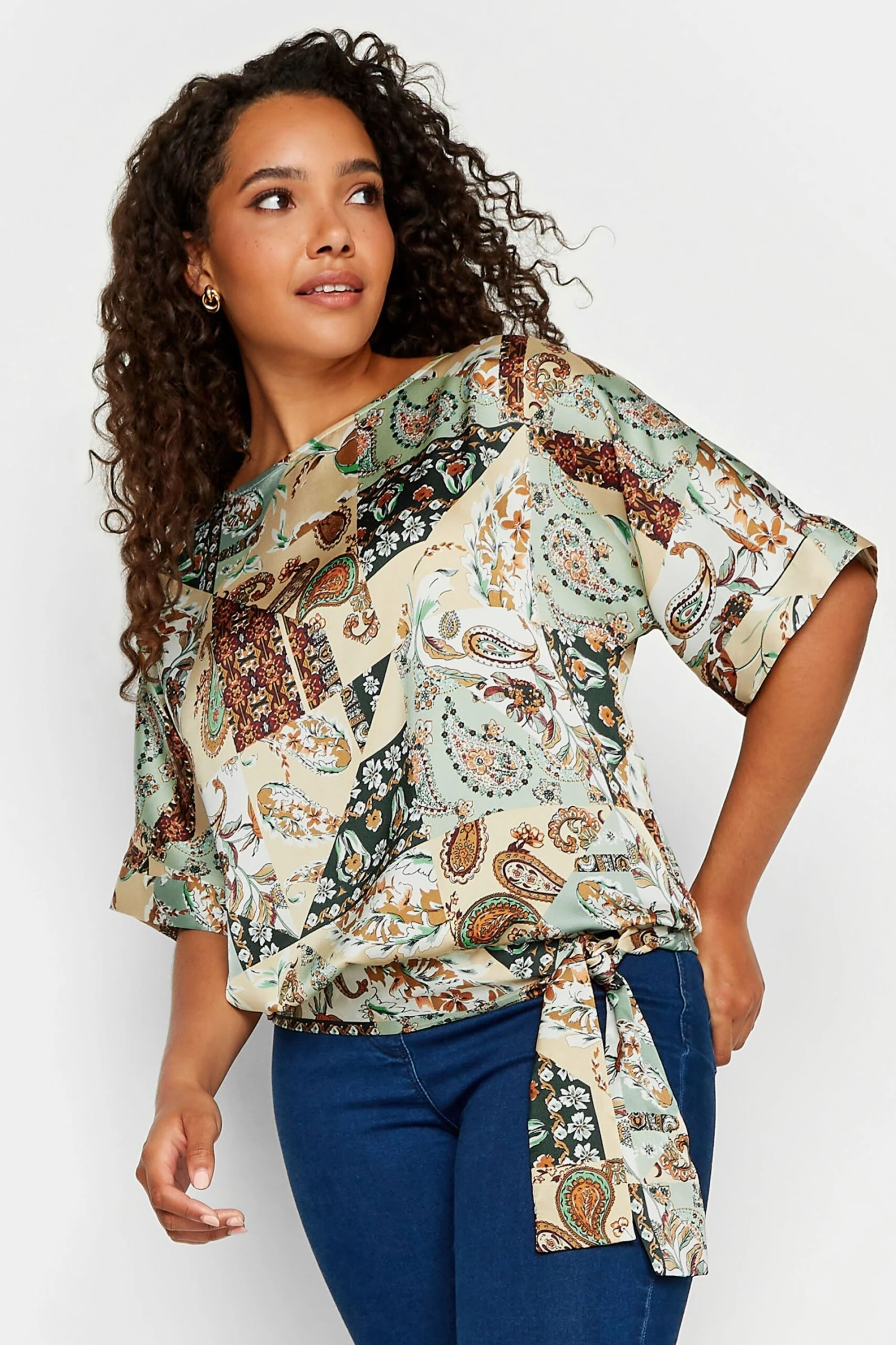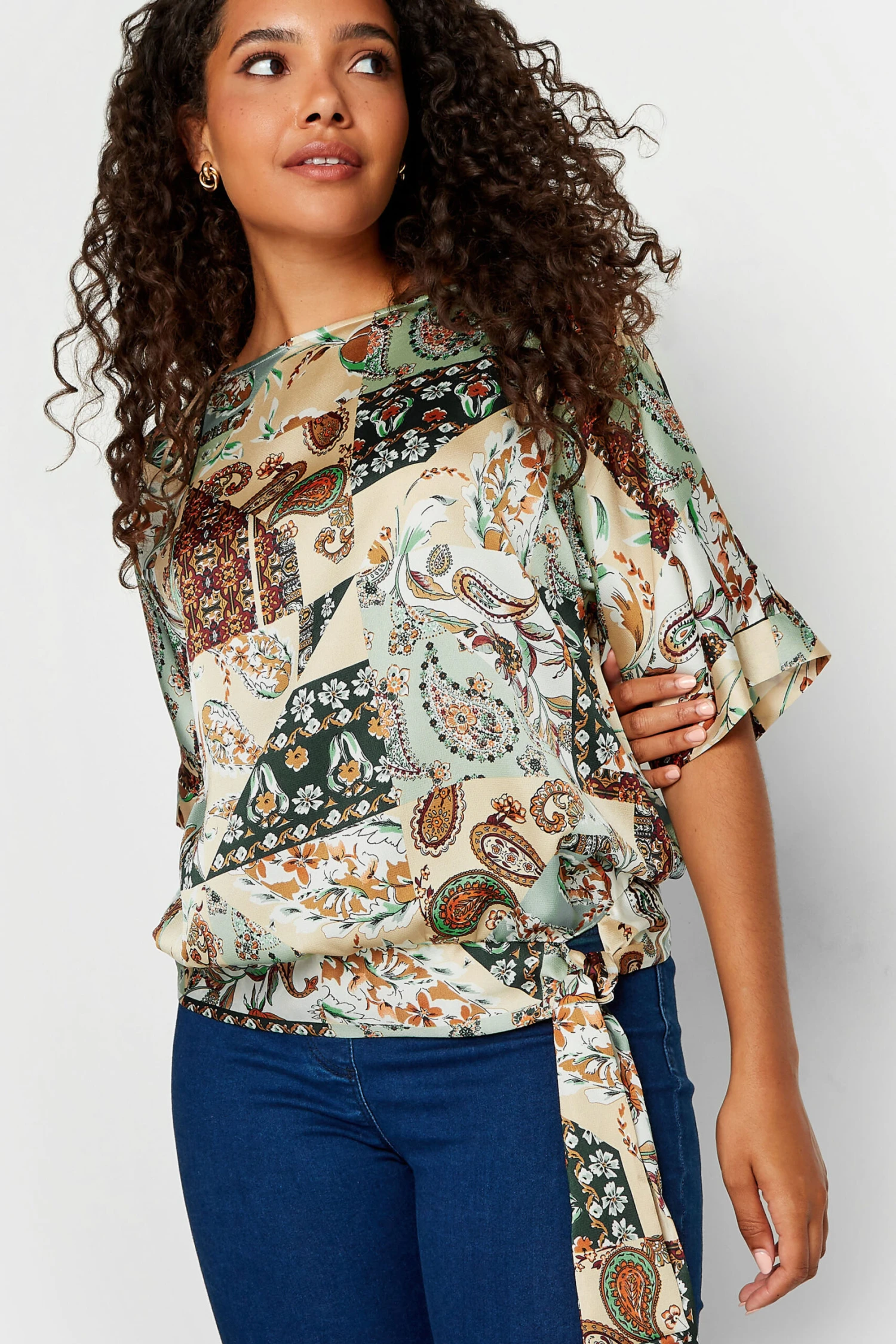 Introduce this must-have paisley print blouse into your new season collection. Made from a comfortable satin fabric, it features short frill sleeves with a scoop neckline. Team with jeans and heels for a look that you can rely on for your next social occasion.