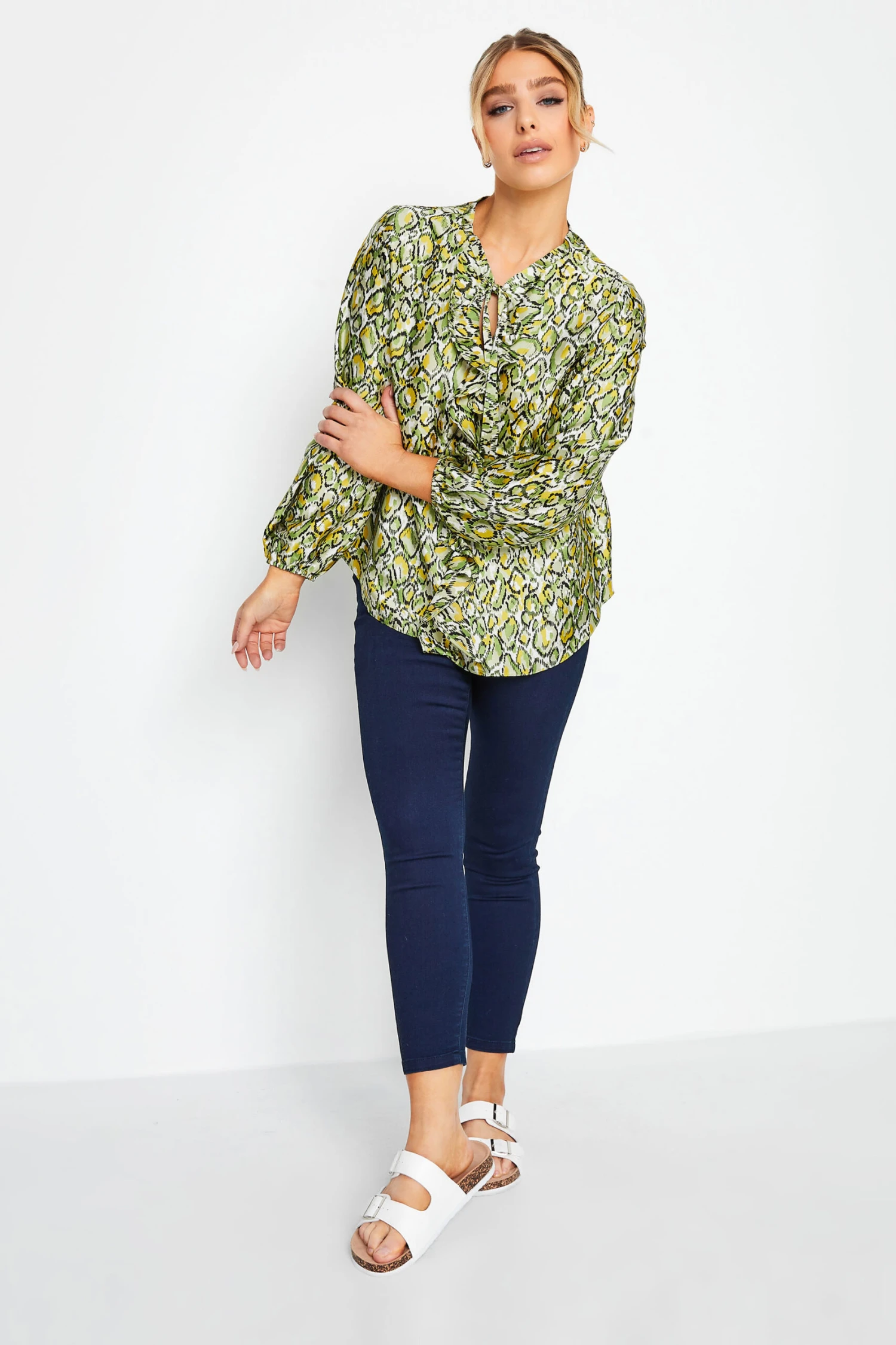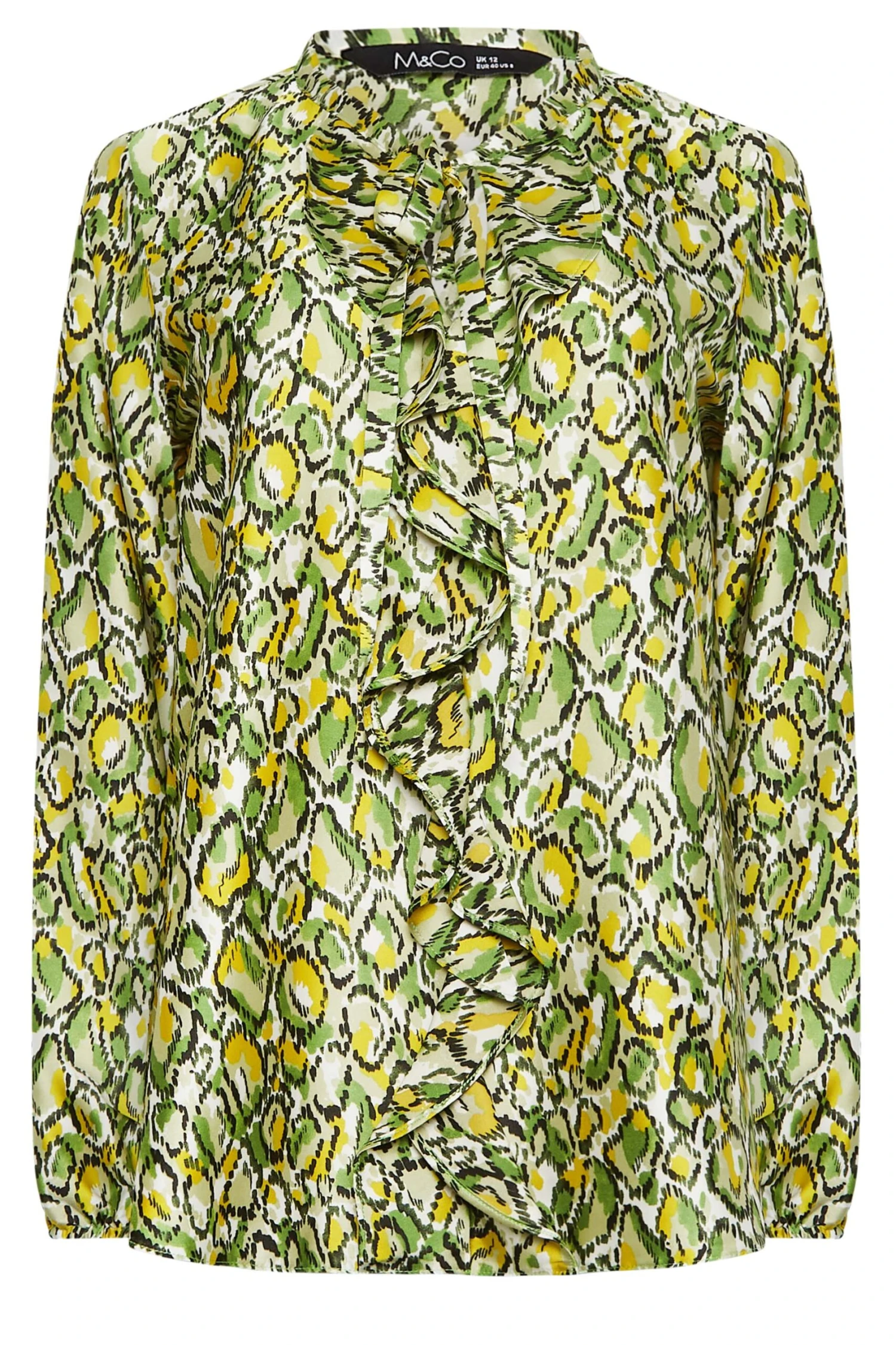 Introduce this must-have print into your new season collection. Made from a comfortable woven fabric, this blouse features a snake print with a tie neck fastening and a frill front. Simply team with jeans and heels for the perfect jeans and a nice top combo.