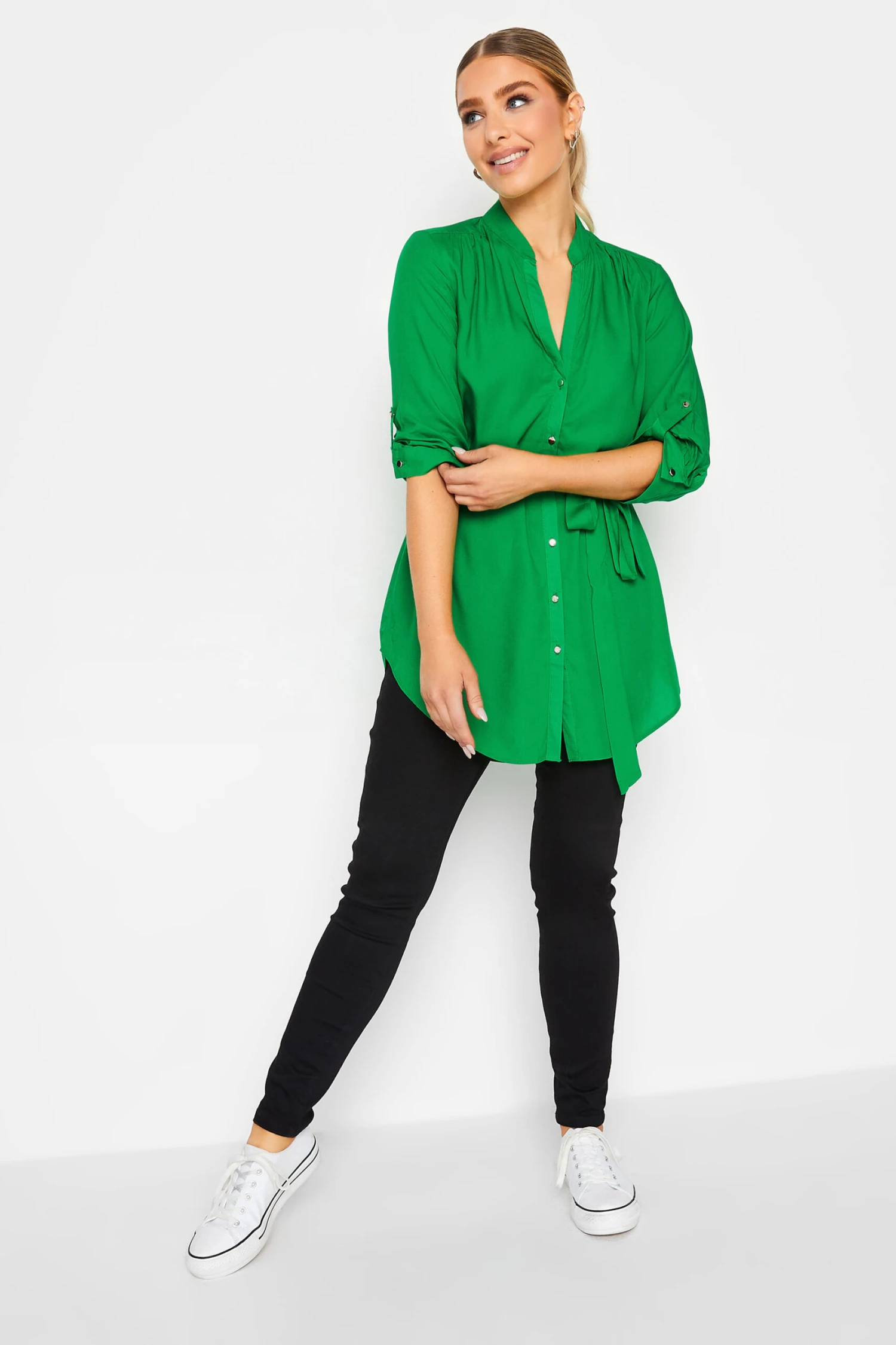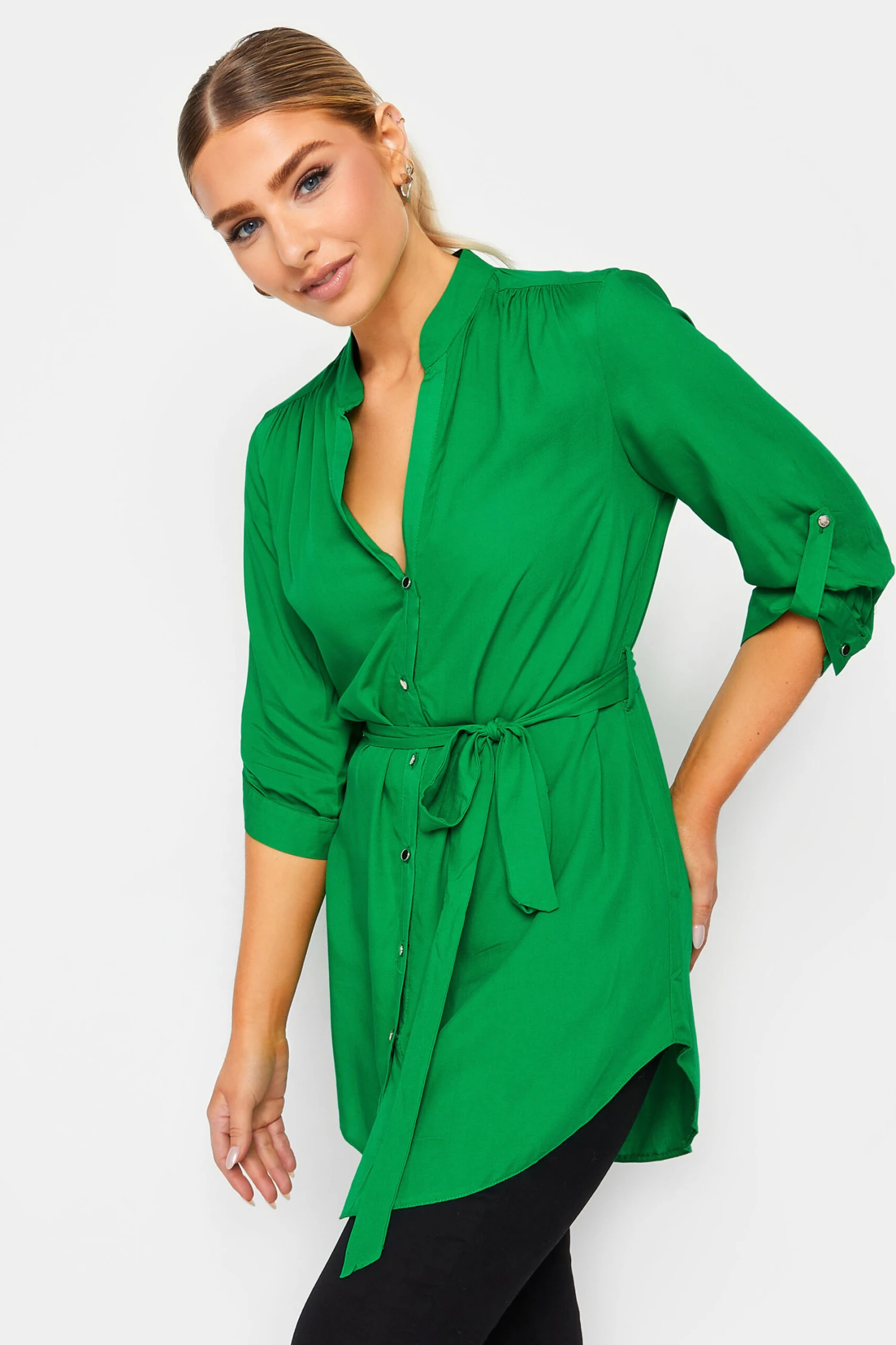 Brighten up your new season collection with this must-have blouse. Made from a soft woven fabric, it features 3/4 length tab sleeves, button through fastenings and a belted tie waist. Simply pair with jeans and sandals for an effortless look that is perfect for everyday wear.