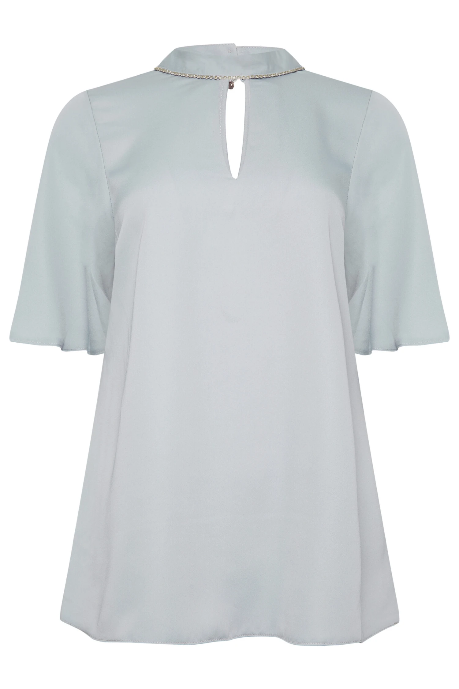 This blouse can take you from desk-to-dinner. Made from a comfortable woven fabric, it features a high embellished neckline with a keyhole front and back button neck fastening with short frill sleeves. Pair with denim and heels for a stylish outfit you can rely on.