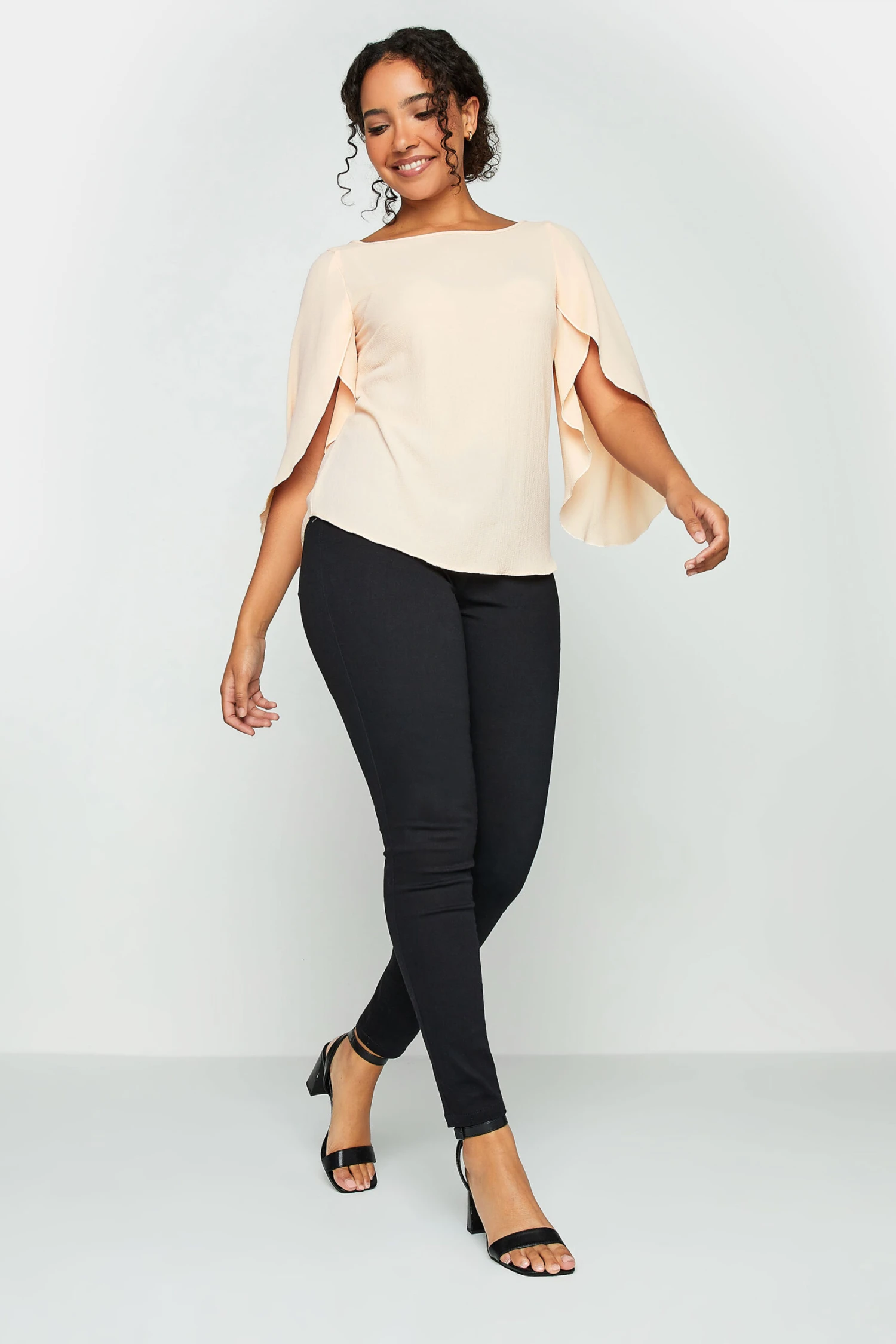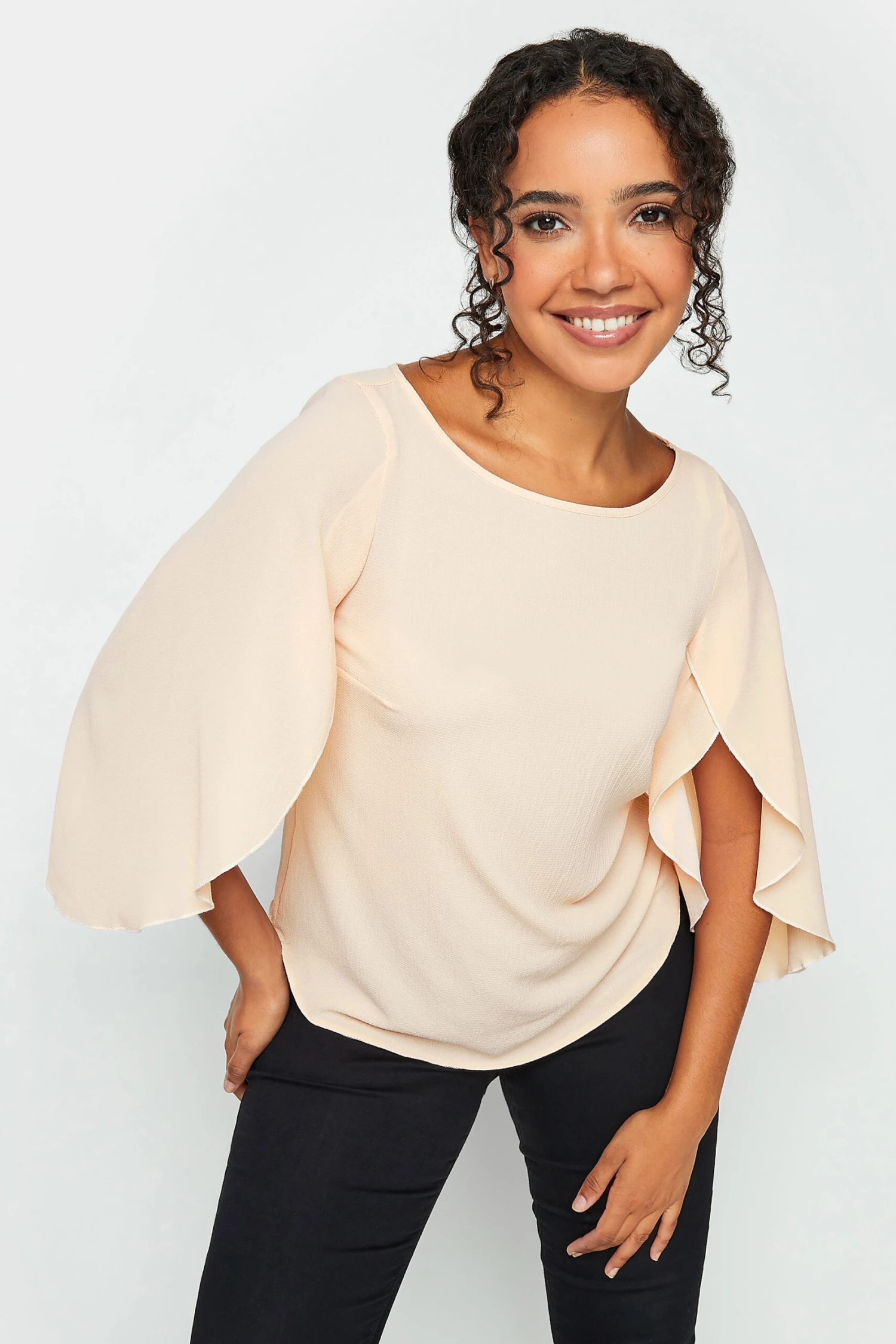 Update your workwear wardobe with this new blouse. Made from a comfortable woven fabric this blouse features a scoop neckline, and long angel sleeves. Style with jeans and heels for a look you can wear with confidence.