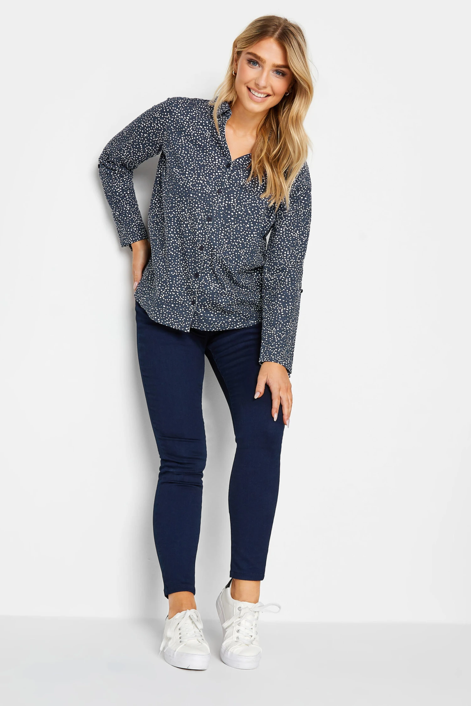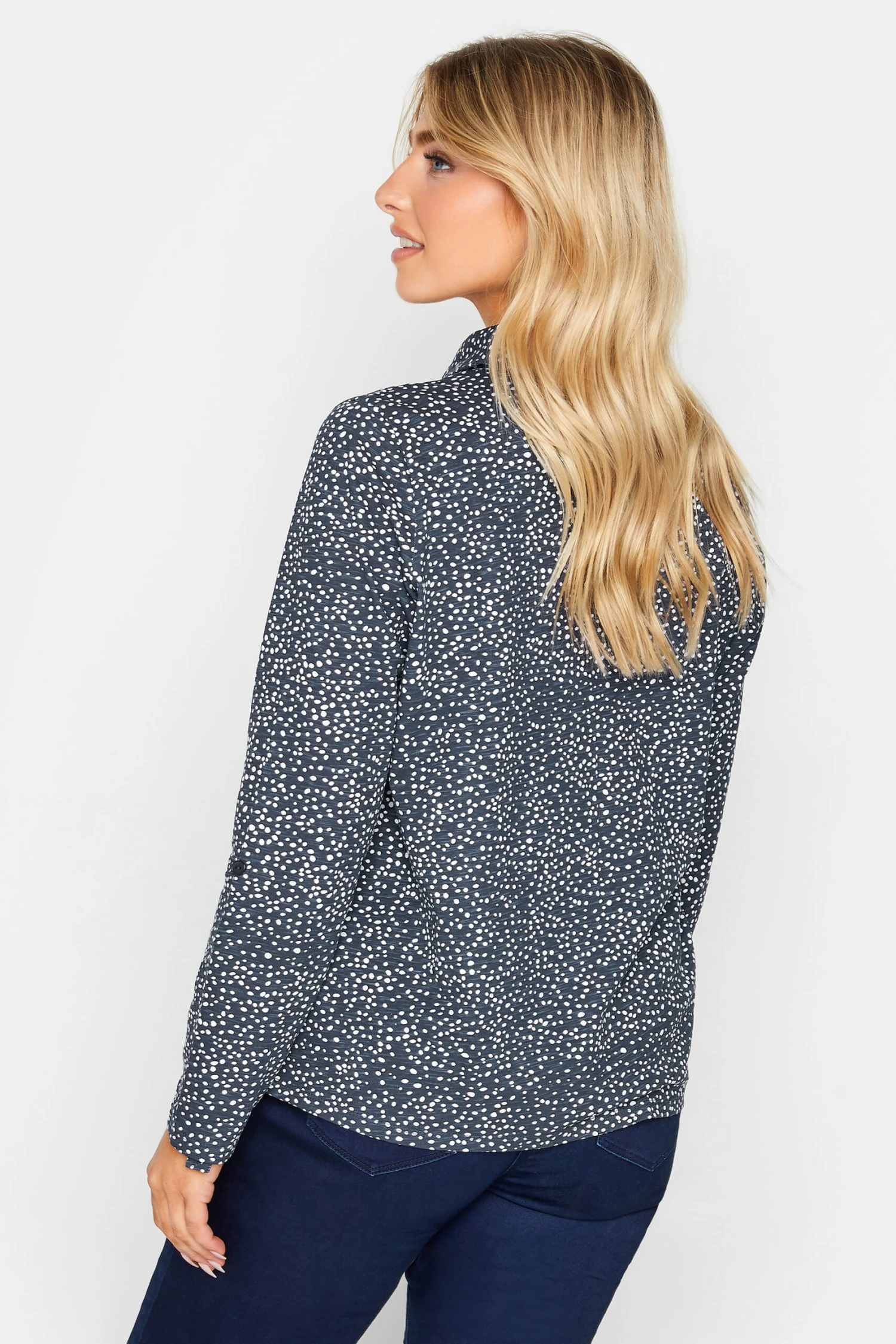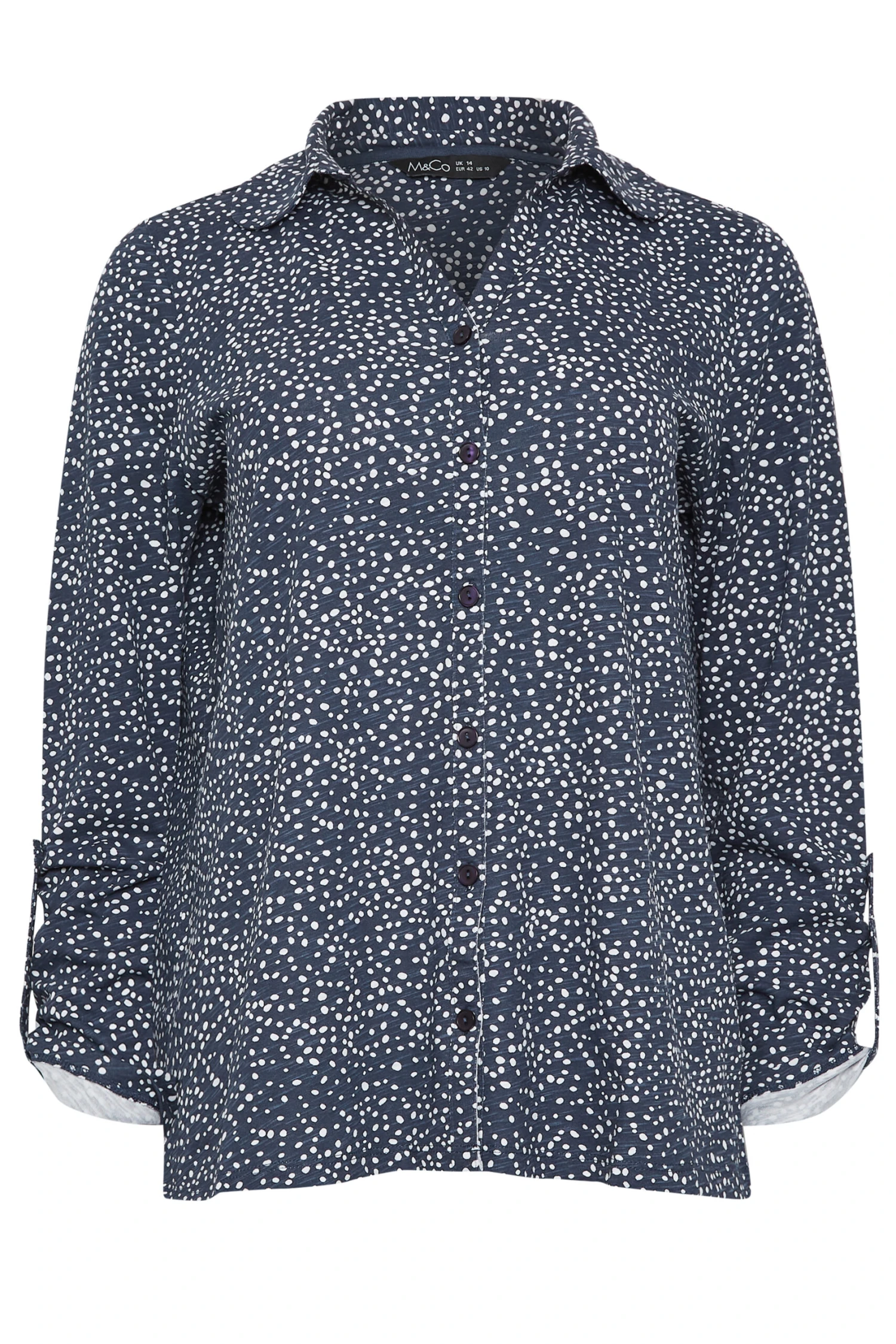 A workwear staple. This cotton shirt features an all-over spot print, long sleeves, button fastenings, and a classic collar with a v-neckline. Wear with wide leg trousers and a blazer for a smart look.
