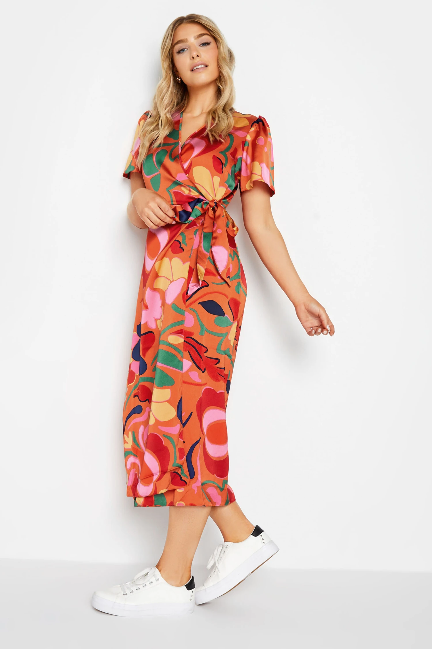 Upgrade your new season collection with this new-in wrap dress. Made from a comfortable jersey fabric, it features a floral print with a tie waist fastening and front split hemline. Simply pair with heels for an effortless look that can take you from desk-to-dinner in style.