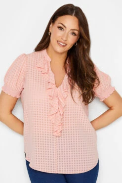 Welcome some newness into your wardrobe. Made from a comfortable woven fabric, this blouse features a v-neckline with frill front detail and ruched short sleeves. Complete the outfit with jeans and heels for a smart casual look.