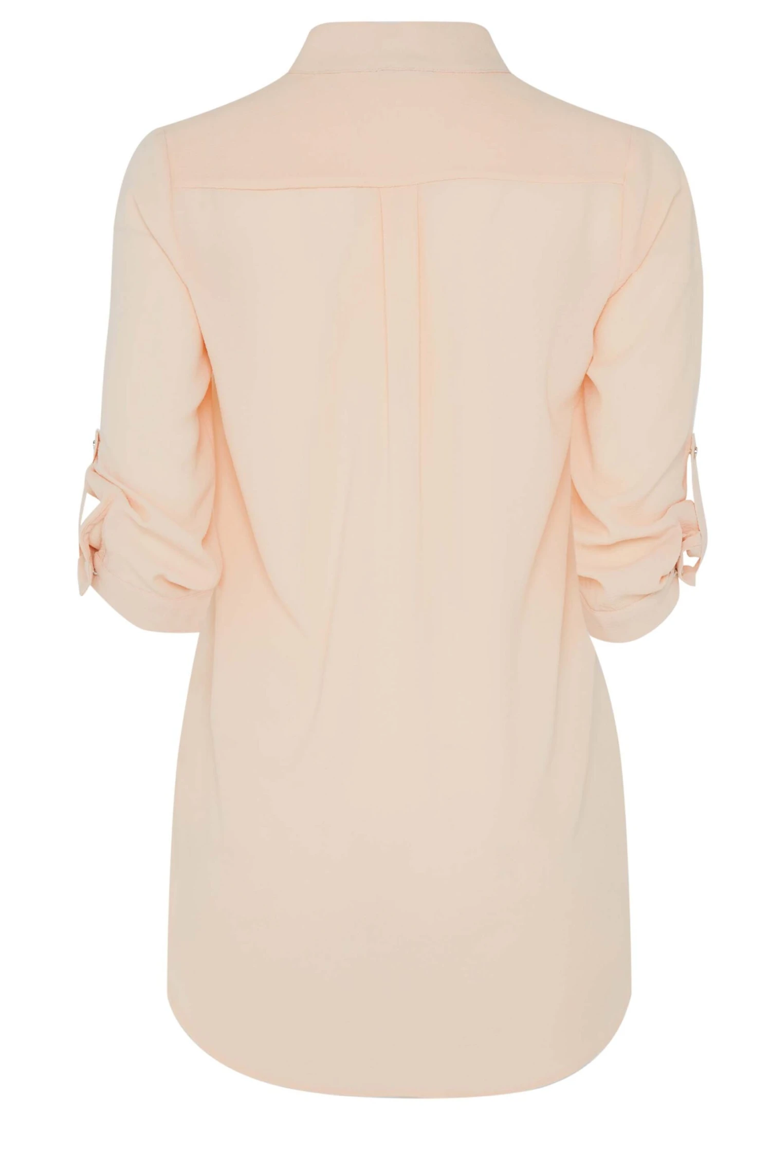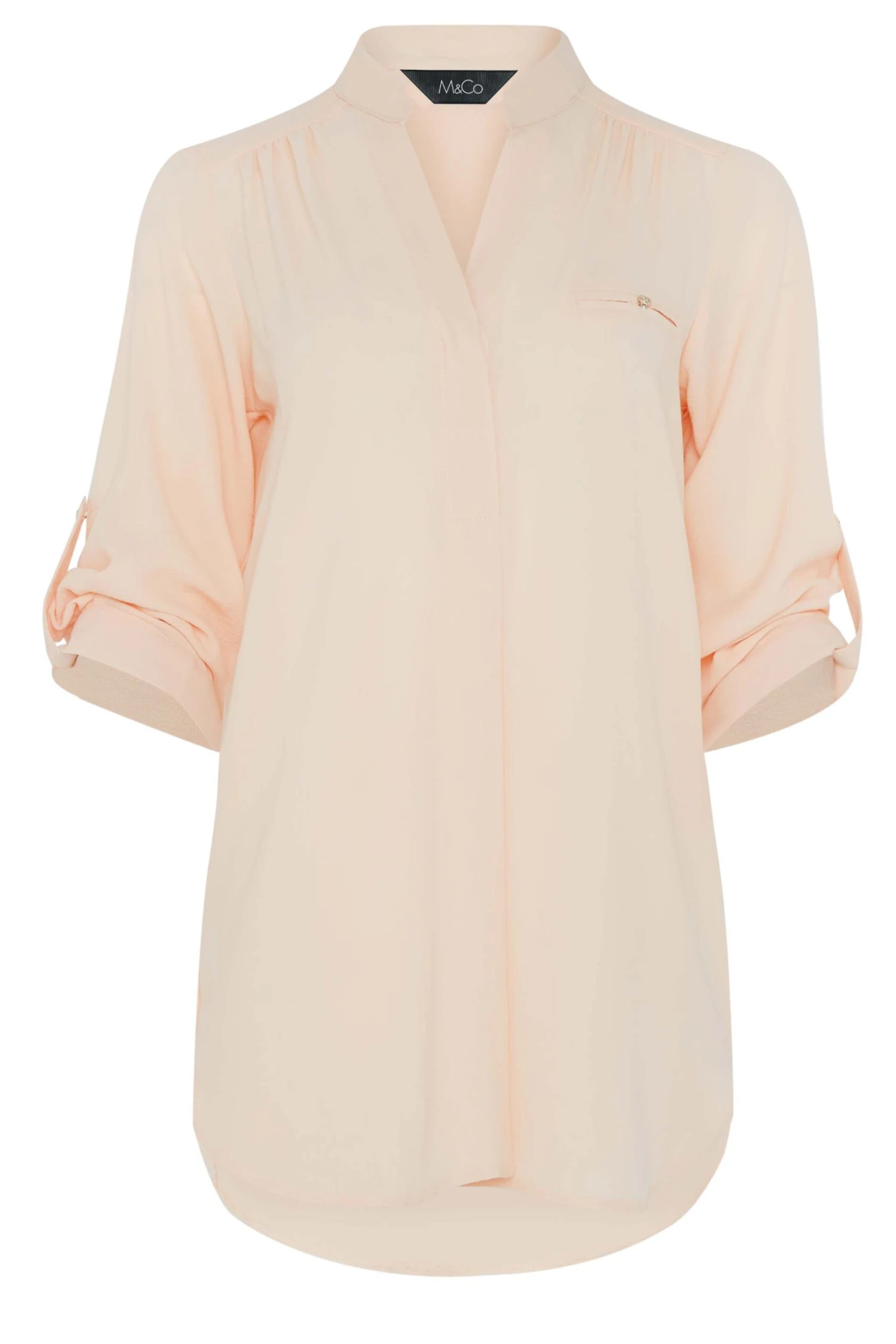 This new-in blouse is the perfect option to take you from desk-to-dinner in style. Made from a comfortable woven fabric, it features 3/4 length roll tab sleeves with a mock chest pocket and v-neckline. Complete the look with trousers and loafers for a smart-casual look.