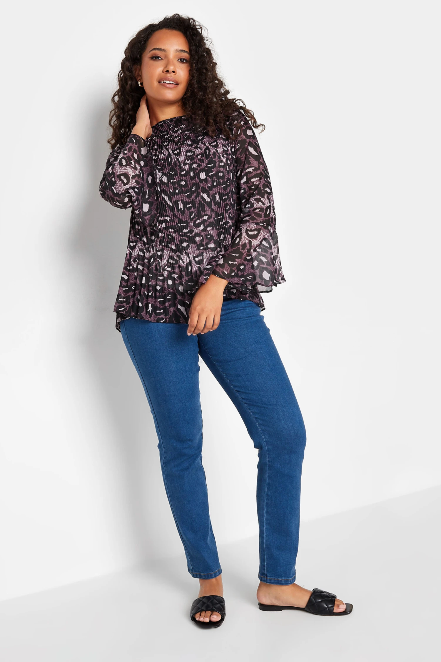 Add some print into everyday. Made from a comfortable woven fabric this blouse features long sleeves, a scoop neckline, and a pleat front. Style with trousers and heels for a look that’ll take you from the desk-to-dinner.