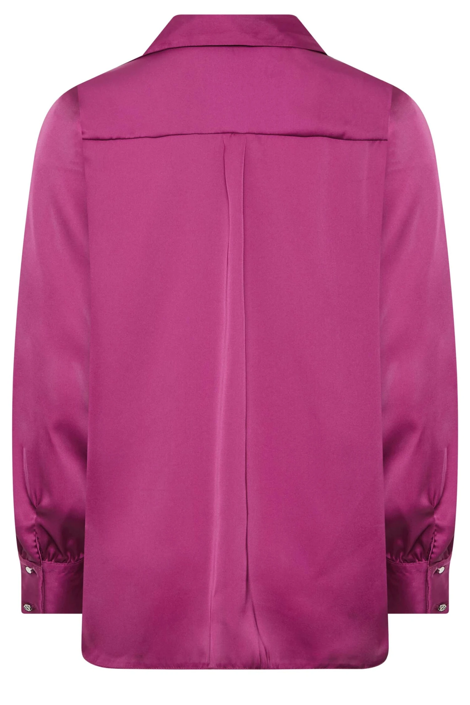 Get ready for the weekend with this must-have satin blouse. Featuring a v-neckline with an open collar, long sleeves, and a dipped hem, it is finished in a beautiful satin fabric. Style with jeans and heels for day-to-night dressing.