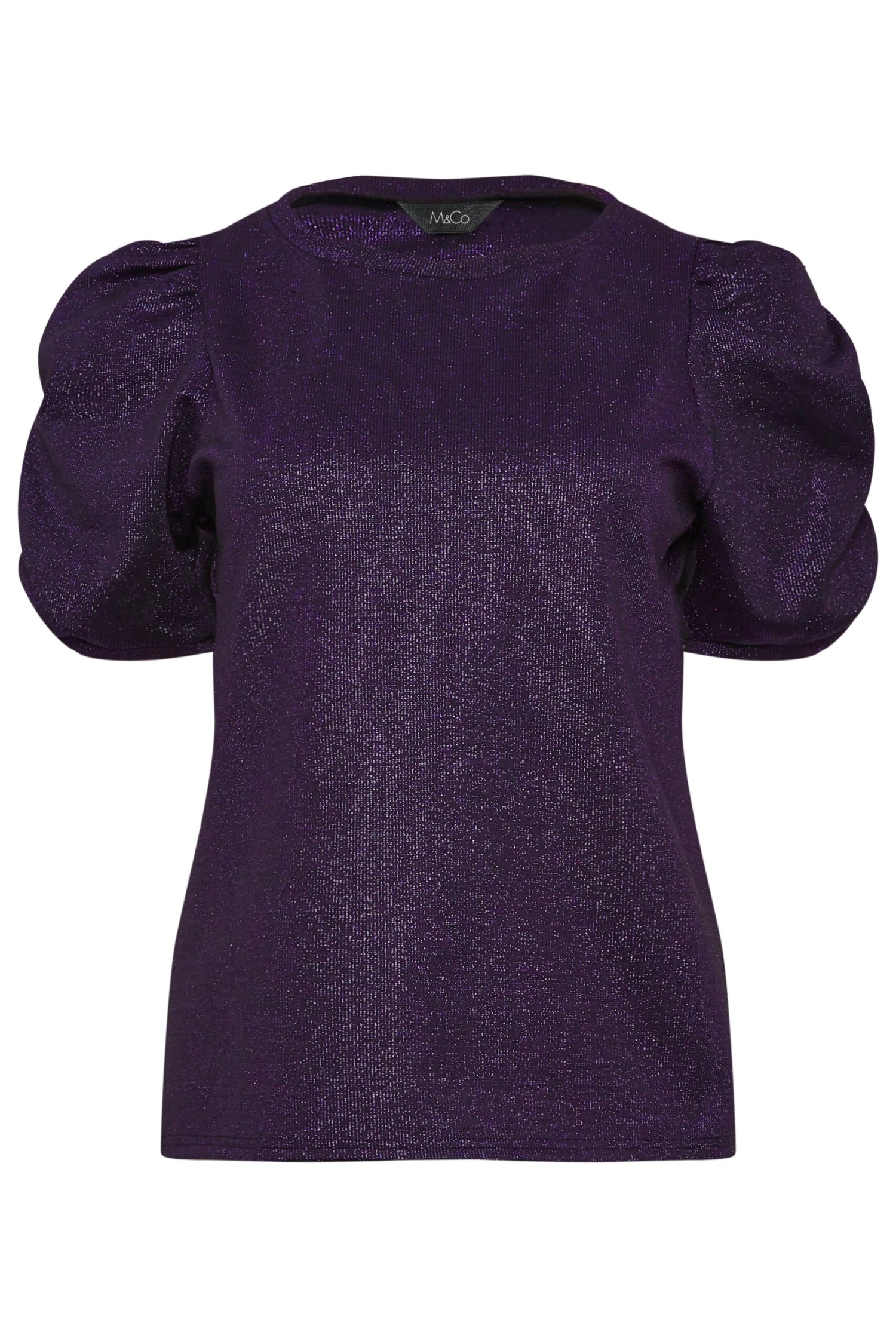 M&Co Purple Shimmer Ruched Sleeve Blouse