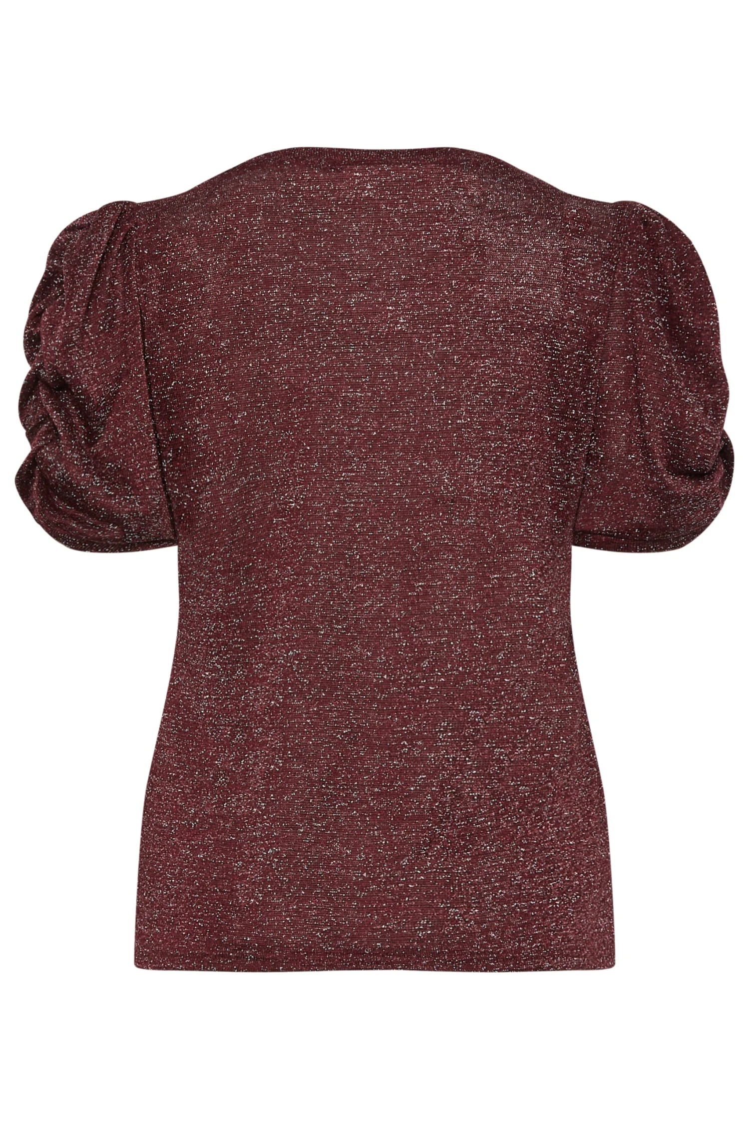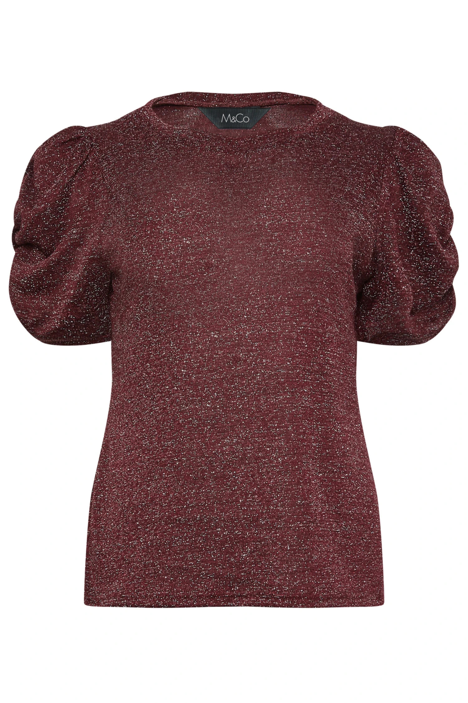 Add a touch of shine to your wardrobe with this new-in blouse. Made from a comfortable woven fabric, it features a scoop neckline with short ruched sleeves in a glitter design. Pair with trousers and heels for a day-to-night look.
