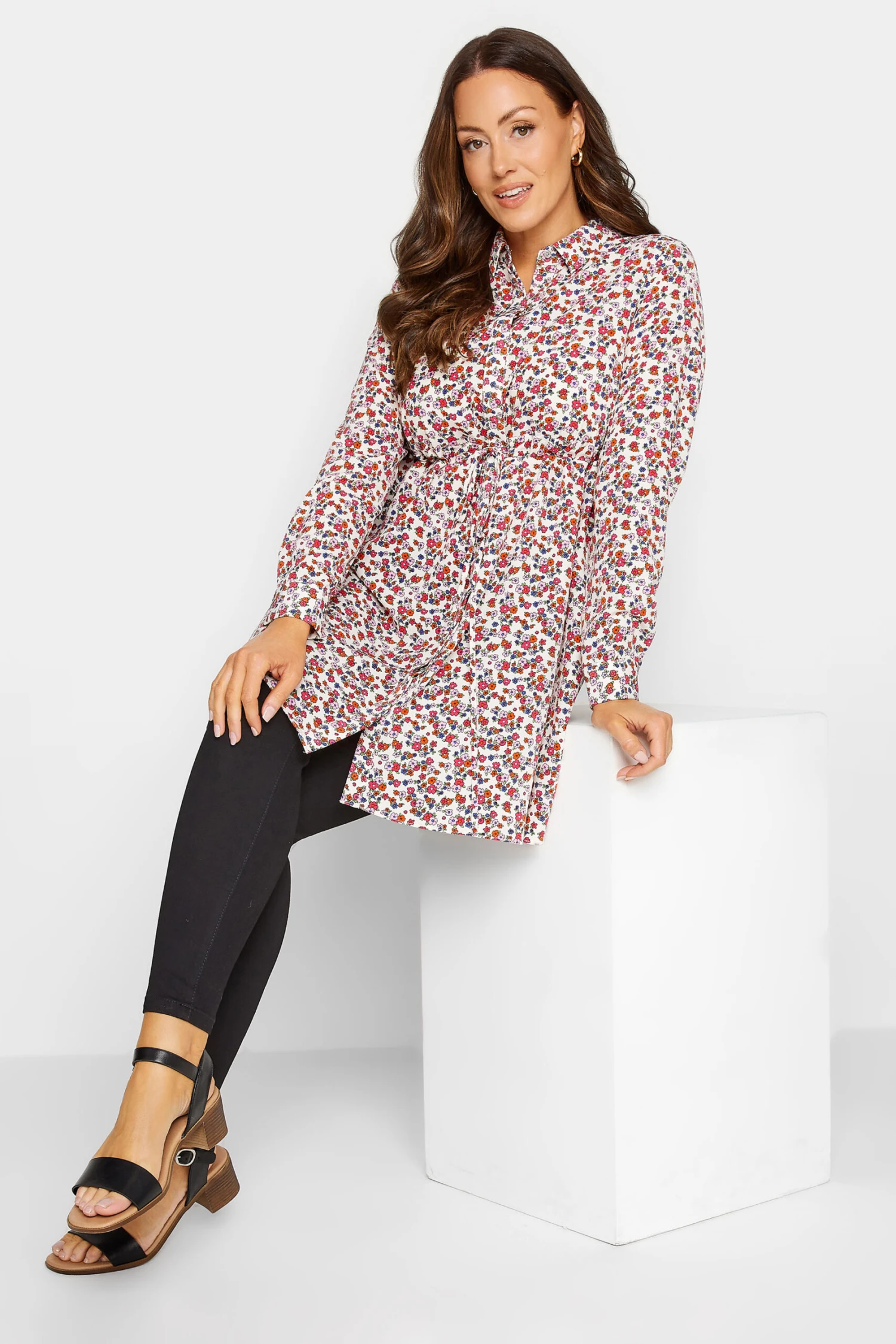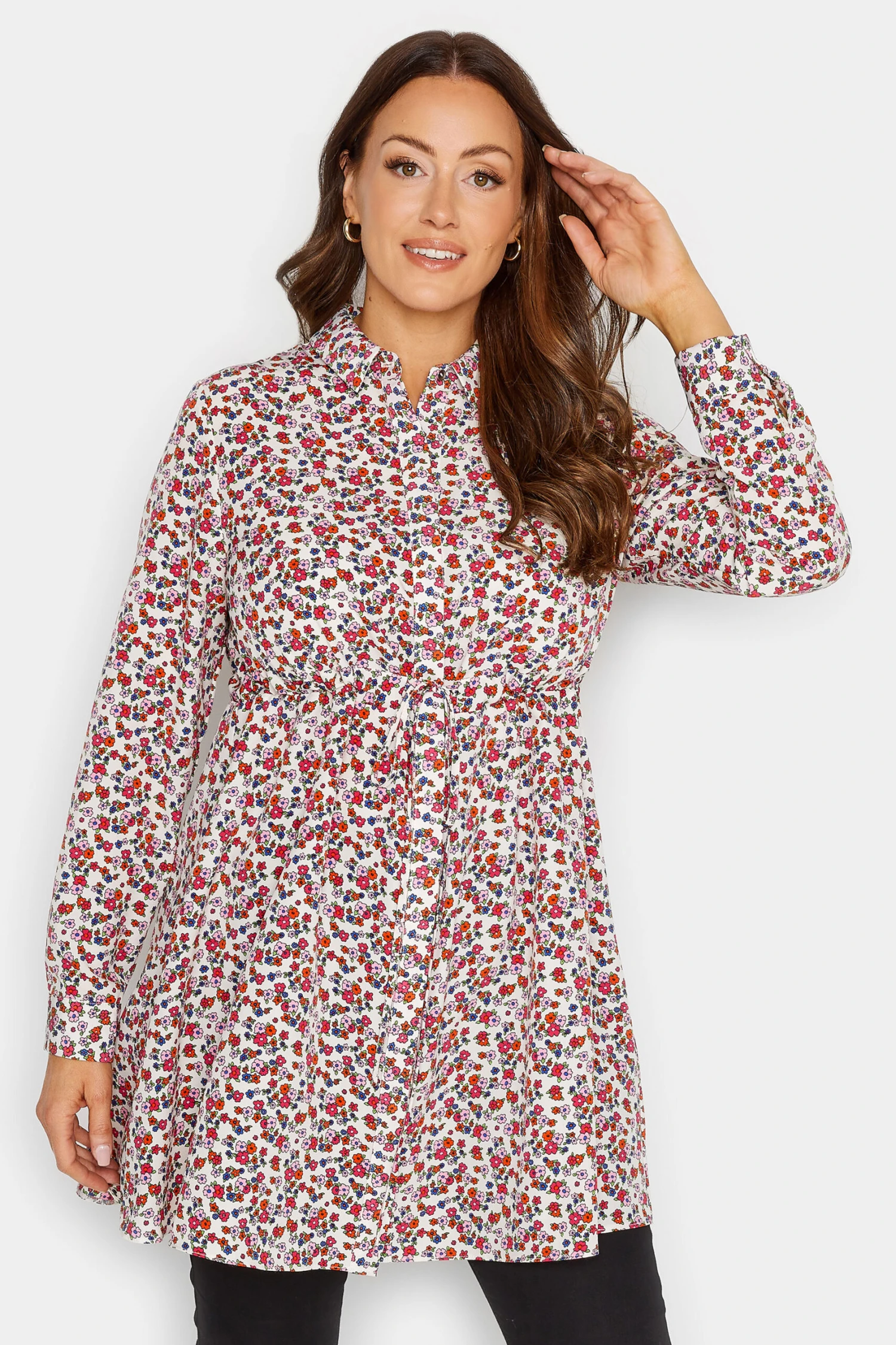 Add this new-in tunic shirt to your everyday wardrobe. In a floral print, this tunic features an adjustable tie waist with a classic collar, button-through fastenings, and long sleeves. Pair with jeans and trainers for a stylish look.