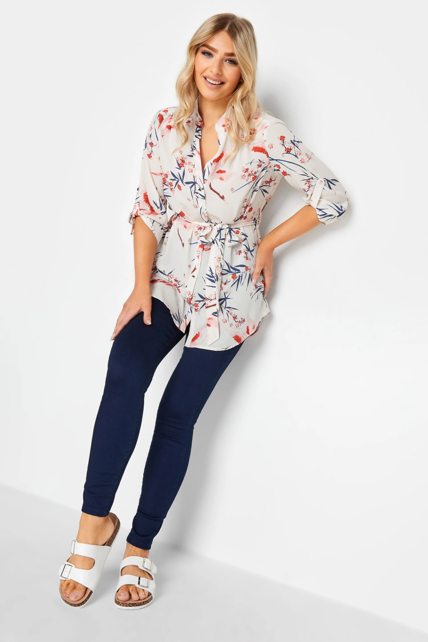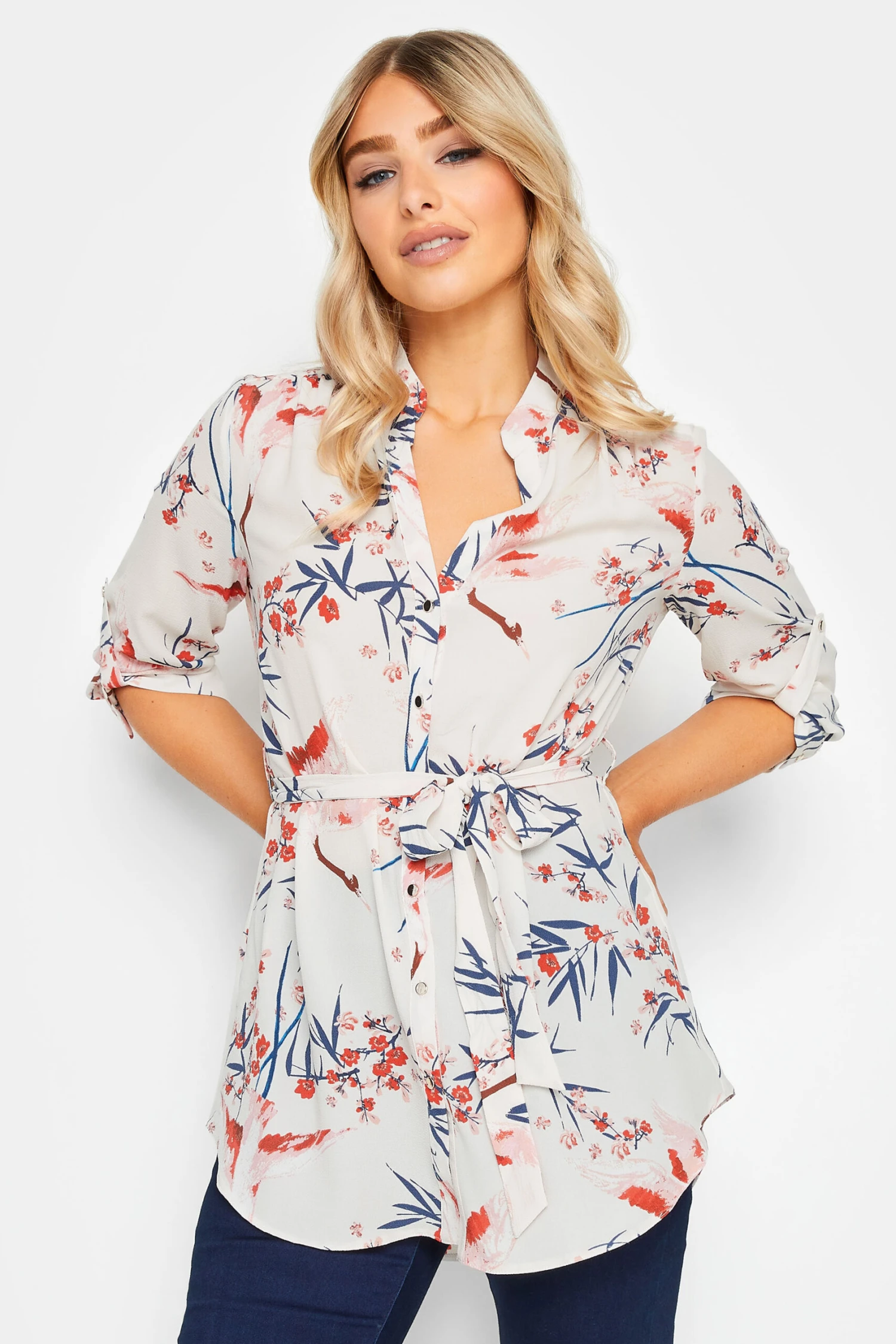 Brighten up your new season collection with this must-have blouse. Made from a comfortable woven fabric, it features 3/4 length tab sleeves, button through fastenings and a belted tie waist, complete in a floral print. Simply pair with jeans and sandals for an effortless look that is perfect for everyday wear.