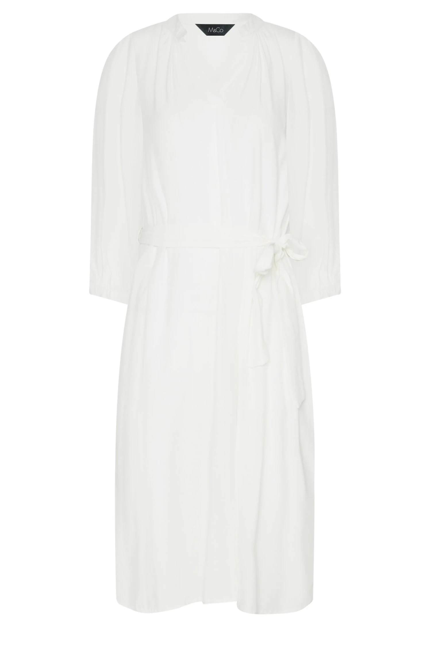 A new addition to your Summer collection. This tunic dress, made from a comfortable woven fabric features a v-neckline, 3/4 length sleeves and an adjustable tie waist, with a side split hem. Pair with heels to look and feel your best.