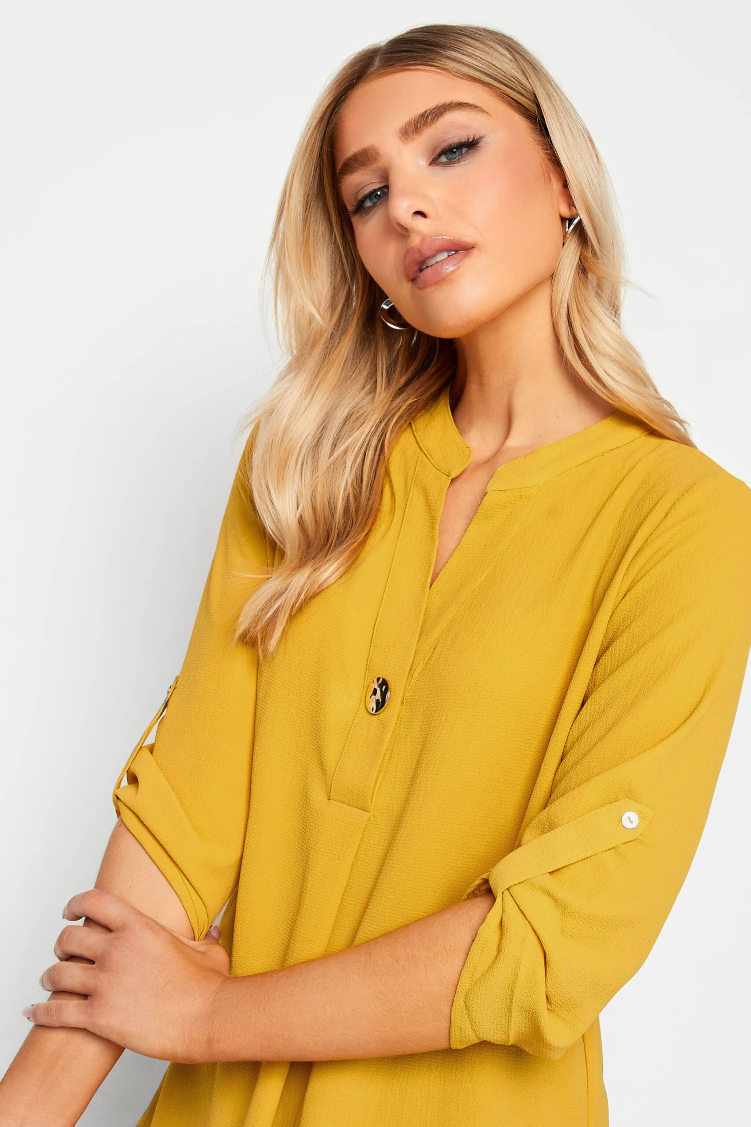 M&Co Yellow Long Sleeve Button Blouse