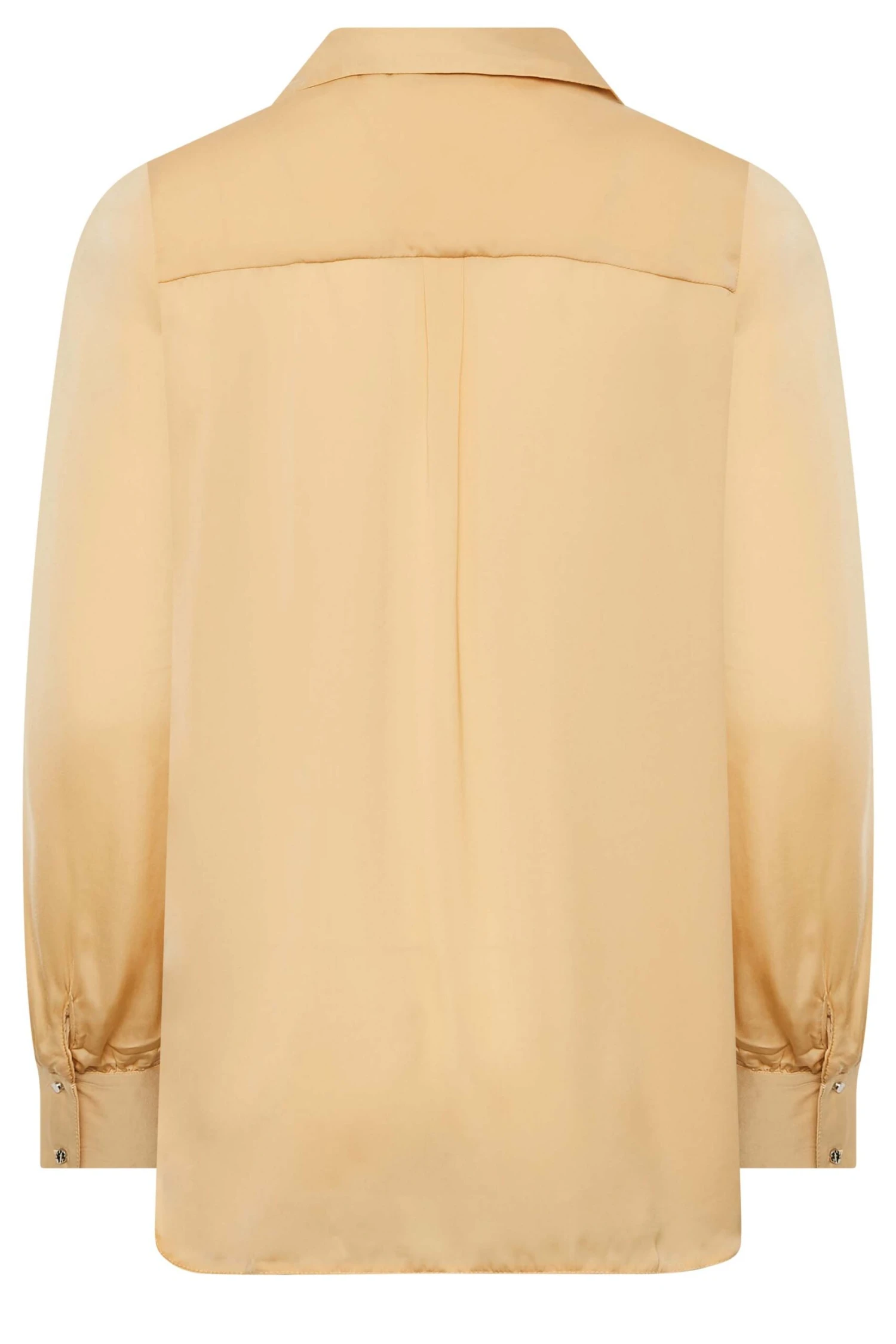Get ready for the weekend with this must-have satin blouse. Featuring a v-neckline with an open collar, long sleeves, and a dipped hem, it is finished in a beautiful satin fabric. Style with jeans and heels for day-to-night dressing.